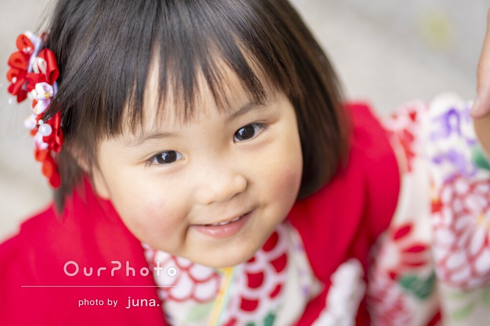 3歳、6歳の娘の七五三の撮影をお願いしました!カメラを向けると顔が引きつってしまう娘ですが、自然な笑顔で楽しそうな表情をたくさん残していただきました♡