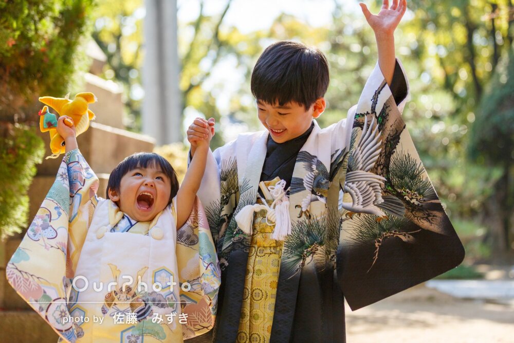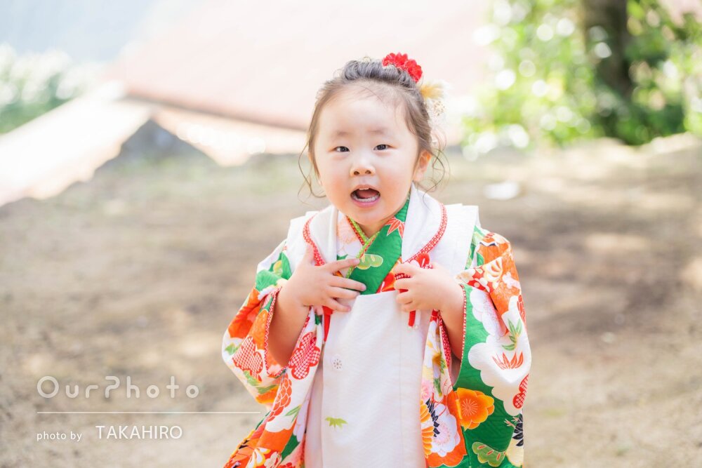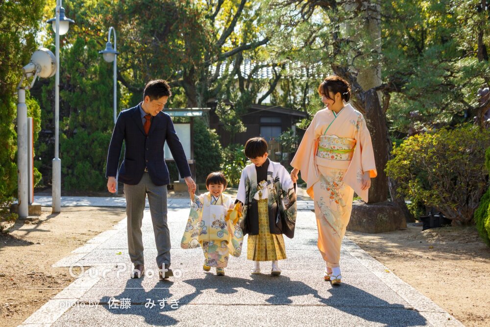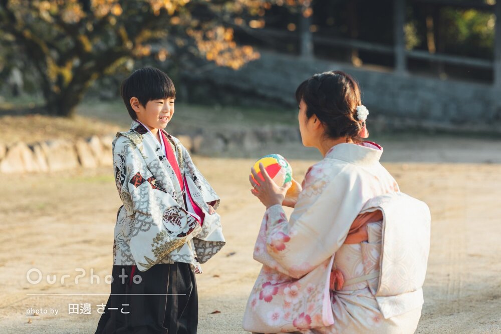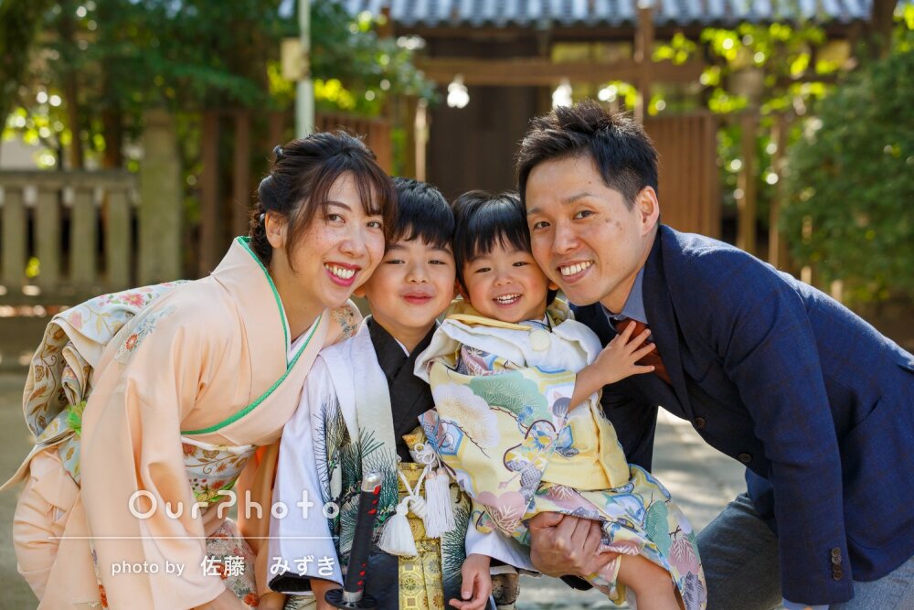 先日は撮影でお世話になり、ありがとうございました。当日まで、どんな方がいらっしゃるんだろうか?とドキドキワクワクしましたが、とても優しくフレンドリーで、子供へのお声掛けもとても上手で、安心してお願いできました。着付けでも、大変お世話になりました。子供たちは楽しく撮影してもらえ、両家の母達にも、とても良かった!と喜んでもらえました。