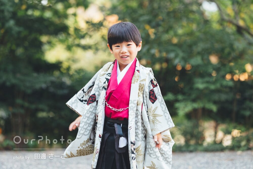 やんちゃな息子。七五三の写真はどうなるかと心配でしたが、凛々しい顔、満面の笑み、変顔も含めて(笑)いまの息子をたくさん切り取って頂きました!
