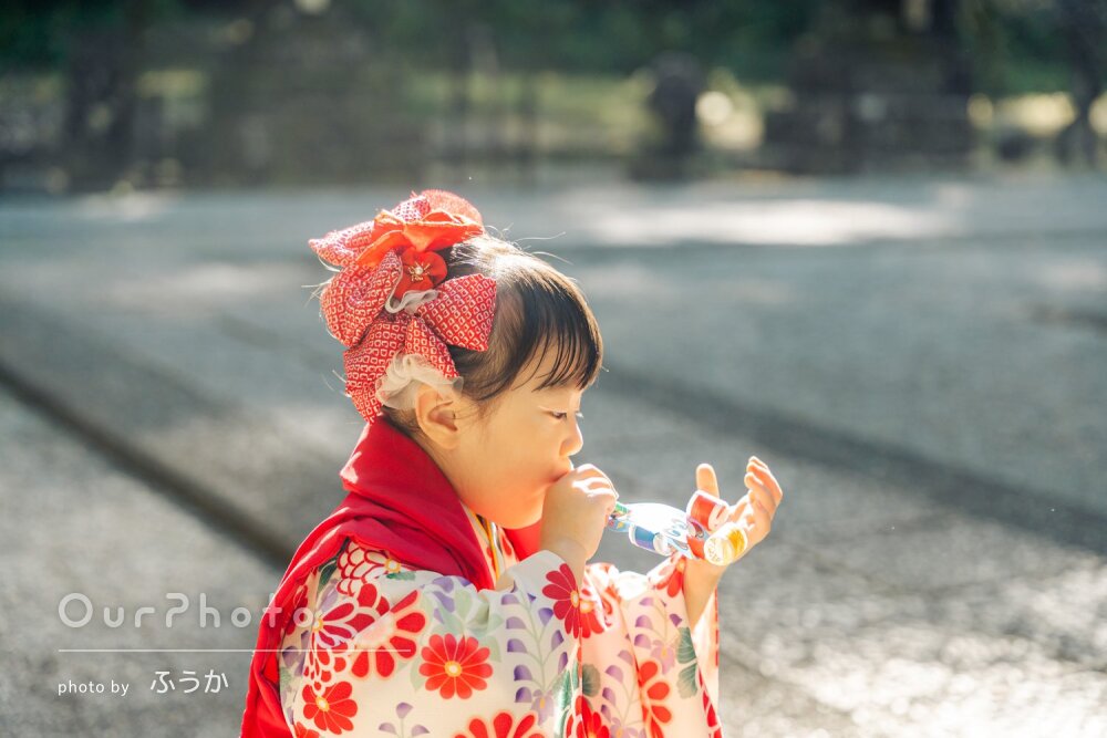 3歳の七五三撮影をお願いしました⛩️子どもが少し不機嫌の中スタートでしたが、ふうかさんの優しいお声かけやお待ち頂いた小道具のお陰でだんだん機嫌もなおり無事撮影を終える事ができました☺️子どものその時の気分に合わせて臨機応変に撮影を進めて下さり本当に助かりました。仕上がってきたお写真も期待以上で一瞬の出来事もキレイに写真に収めてくださっていてふうかさんにお願い出来て良かったです。笑顔だけじゃなくグズって泣いた顔や初めての炭酸ジュースにビックリした顔、色々な表情を撮って下さっていて思い出に残る撮影となりました✨本当にありがとうございました!🥹