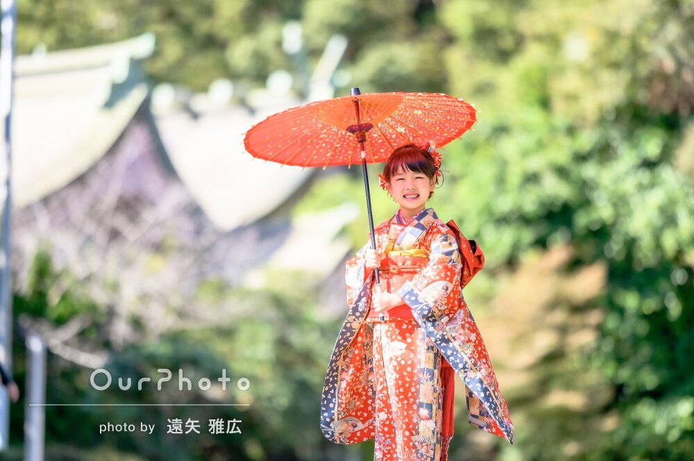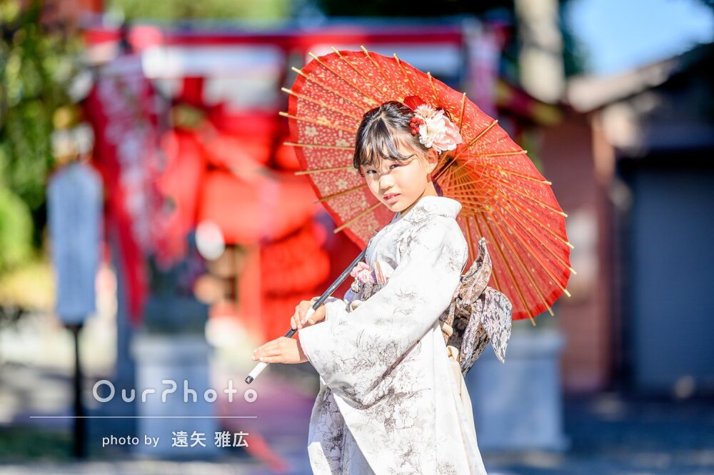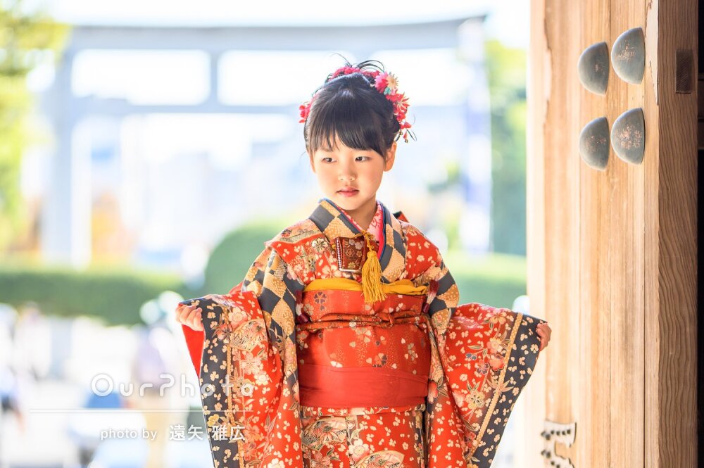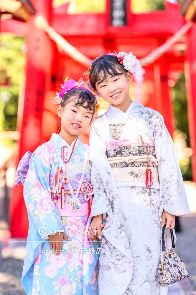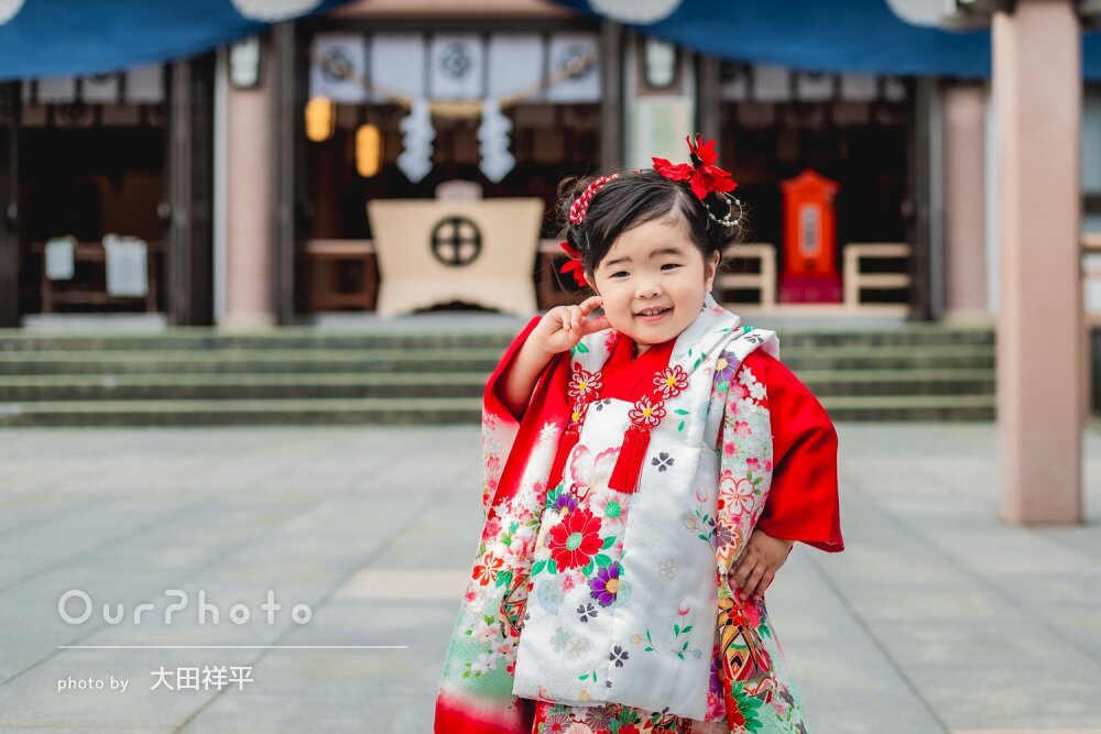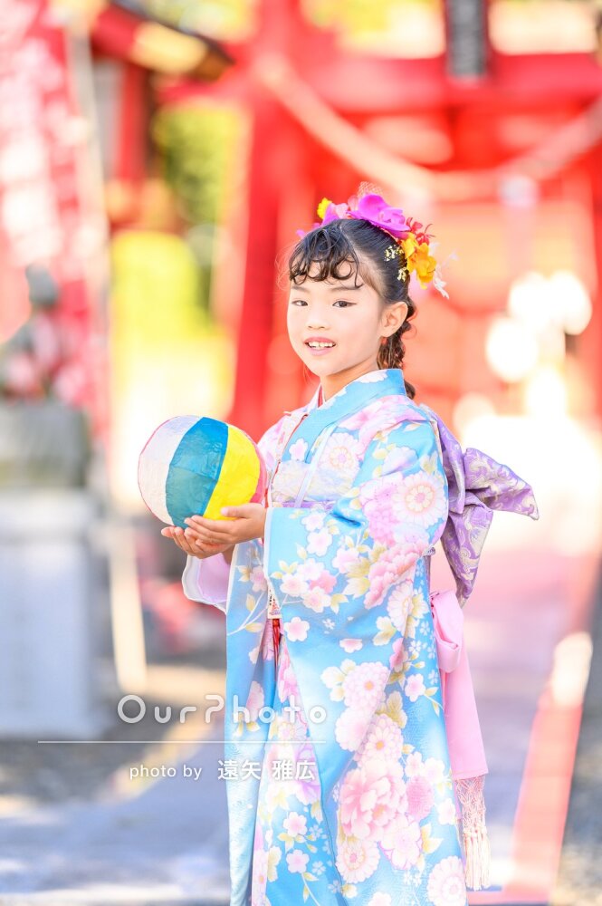 人見知りな子どもたちですが、撮った写真をレンズ越しに見せていただいたり、小物をお借りしたりしてノリノリで撮影させてもらいました!神社内で場所をかえながら、ポーズをたくさん提案していただき楽しい撮影でした。