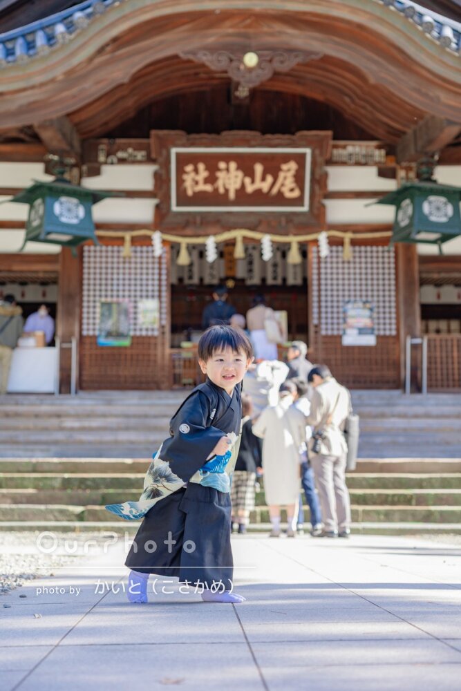 子供対応に慣れ、あっという間に撮影時間が終わりました。慌ただしくなく、ゆっーたり子供のペースで撮影出来ました。下駄が脱げ履かせる様子や、子供に口紅を塗ったりと、何気ない様子も絵になり、良い思い出です。有難うございました!※本殿正面を背景にする撮影希望の方は、事前に要確認です。