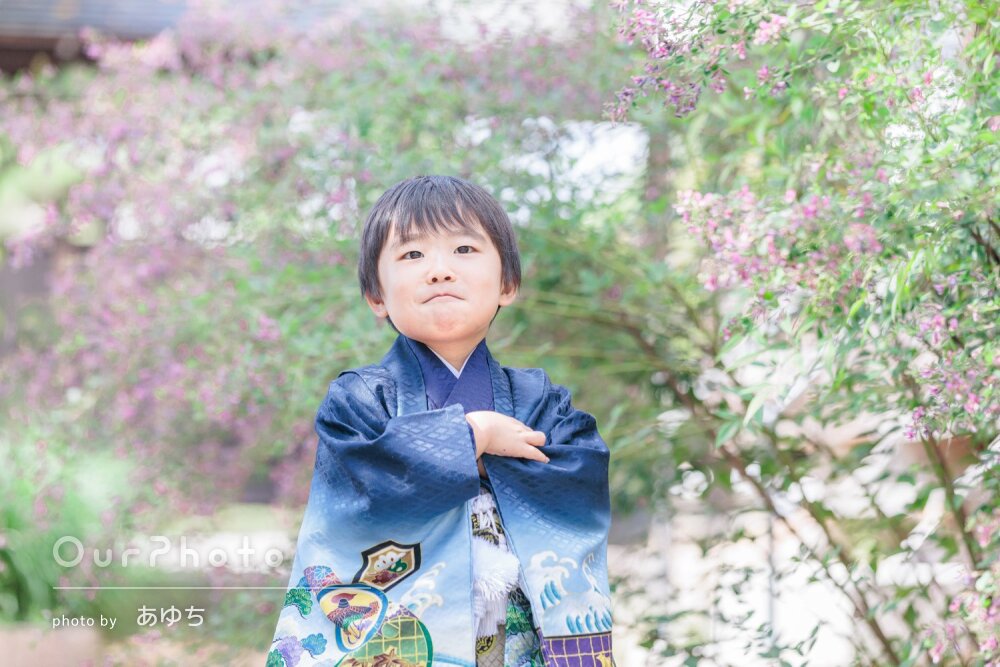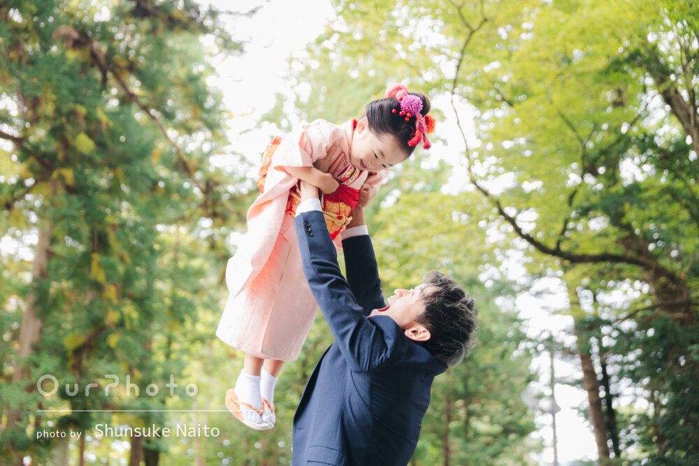 色々なポーズも提案してくださって、自然体な表情の素敵な七五三の写真になりました。家族の記念の日をこんなに華やかな写真として収めてくださって本当にありがとうございました。