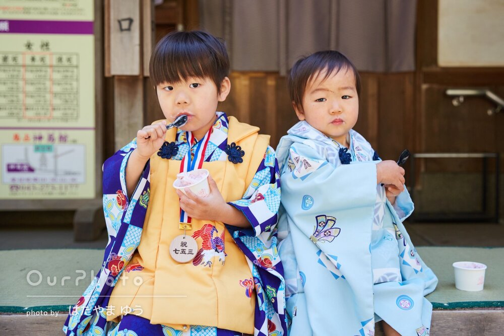 3歳と2歳の七五三の撮影をお願いしました。動き回る3歳とご機嫌ななめの2歳を相手に、小道具などを使ってうまく写真を撮っていただきました。子どもたちのペースに合わせて撮影してくれました。自分たちでは絶対撮れない素敵な写真ばかりで大満足です。