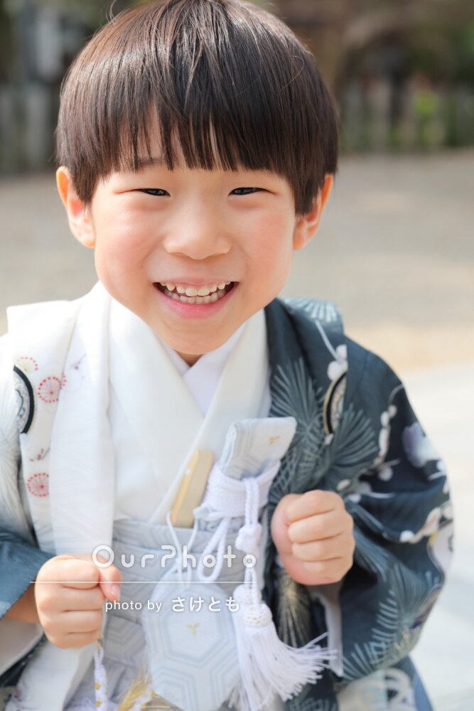 バスやウルトラマンのおもちゃ、お菓子などで色々な表情が私達も写真を通じて見れて嬉しかったです。季節外れの七五三でしたが、晴れた日に桜と写真を残せてとても良い思い出です。スタジオ撮影では断られた、子供の好きなおもちゃやポーズで写真を残せたことも嬉しいことの一つになっています。