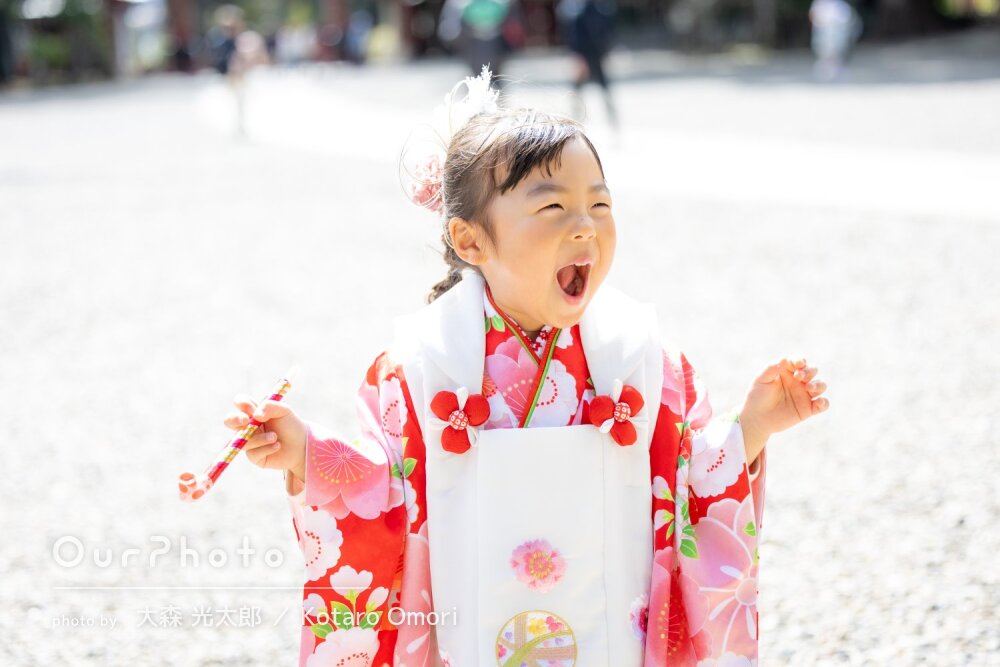 元気に暴れ回る3歳の七五三撮影をお願いしました。