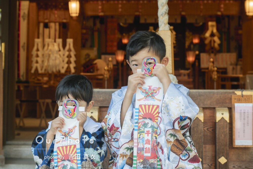 出来上がった写真を見ても、天気が曇りなことや、本殿が改修工事で布で覆われていたことを忘れるくらい素敵な写真にしてくださりありがとうございました!!