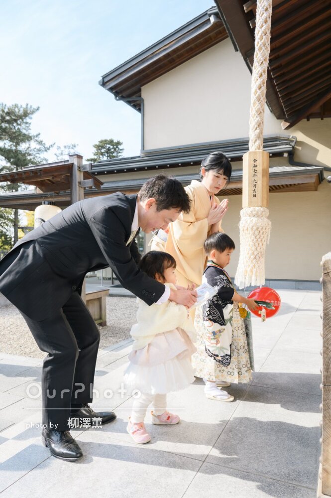手に人形を持って撮影してくださって子供達の目を惹きつけてくれました!子供3人の七五三、大変でしたが、1つ1つお付き合いいただき撮影いただけて本当に良かったです!