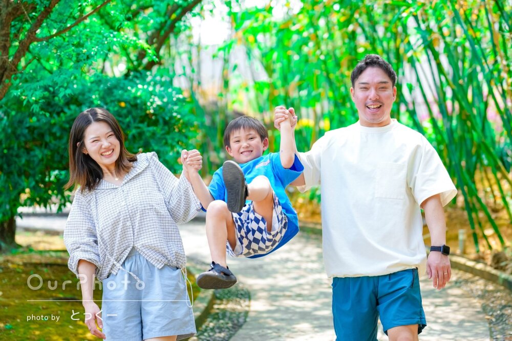 また、私たち親の何気ない表情や、家族が自然に笑い合っている空気感まで丁寧にすくい取ってくださり、ありがとうございます。「ポーズを決めた写真」だけでなく、「その時の幸せな時間」そのものを形にしていただいたような感覚です。