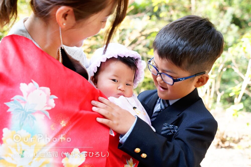 物腰の柔らかい優しい方で、初めは緊張気味だった息子もお会いしてすぐに本来のやんちゃな姿を披露できるほど打ち解けており、楽しく過ごすことができました。娘のお宮参りはもちろんですが、息子の七五三参拝も兼ねていたので、今しか撮れない姿をたくさん撮っていただけて嬉しかったです。