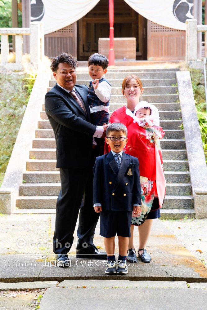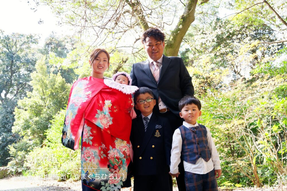 下の子のお宮参りで撮影していただきました。当日は両家の両親含め大人数でしたが、全員、それぞれの家族、とバランスよく撮影していただけてよかったです。上の子もイヤイヤ期でしたが声掛けやおもちゃを待ってきていただいたりしたおかげで笑顔のお写真が撮れました。