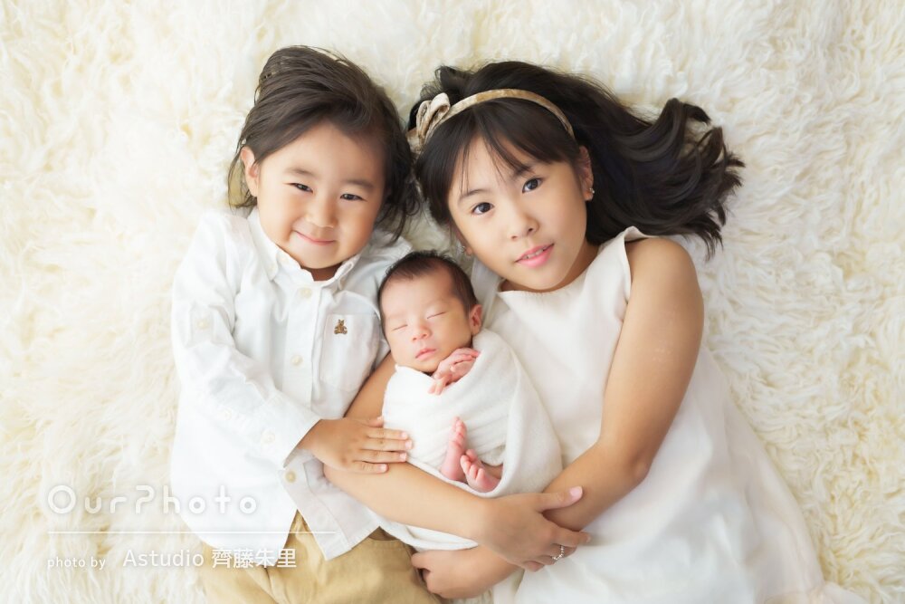 出張の利用は初めてだったので、どんな方が来るのかどんな撮影が出来るのかドキドキでしたが、上の子達ともたくさんお話してくださったり産後の体調を気遣ってくださったりと優しい方でした。