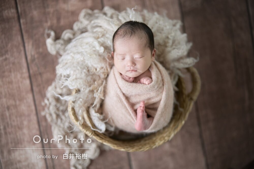 カゴに入れての撮影はもう透 少し赤ちゃんの顔が出てるといいなぁーと思いました。