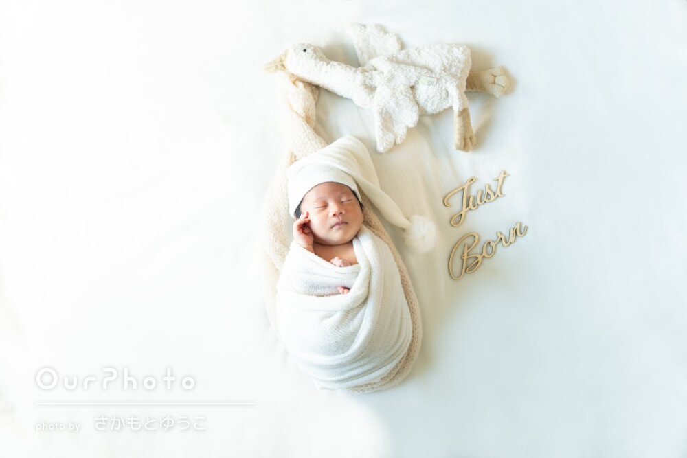 産後ケアホテルまで出張していただき、お部屋でニューボーンフォトを撮影していただきました。