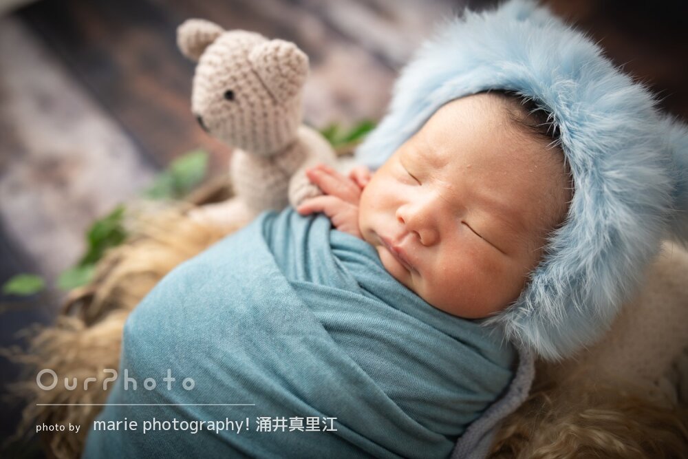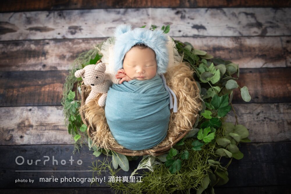 小物やおくるみの種類もとても多く、選ぶのに迷いましたがいくつか選択肢を出してくれるので素敵な写真になりとても嬉しかったです^_^