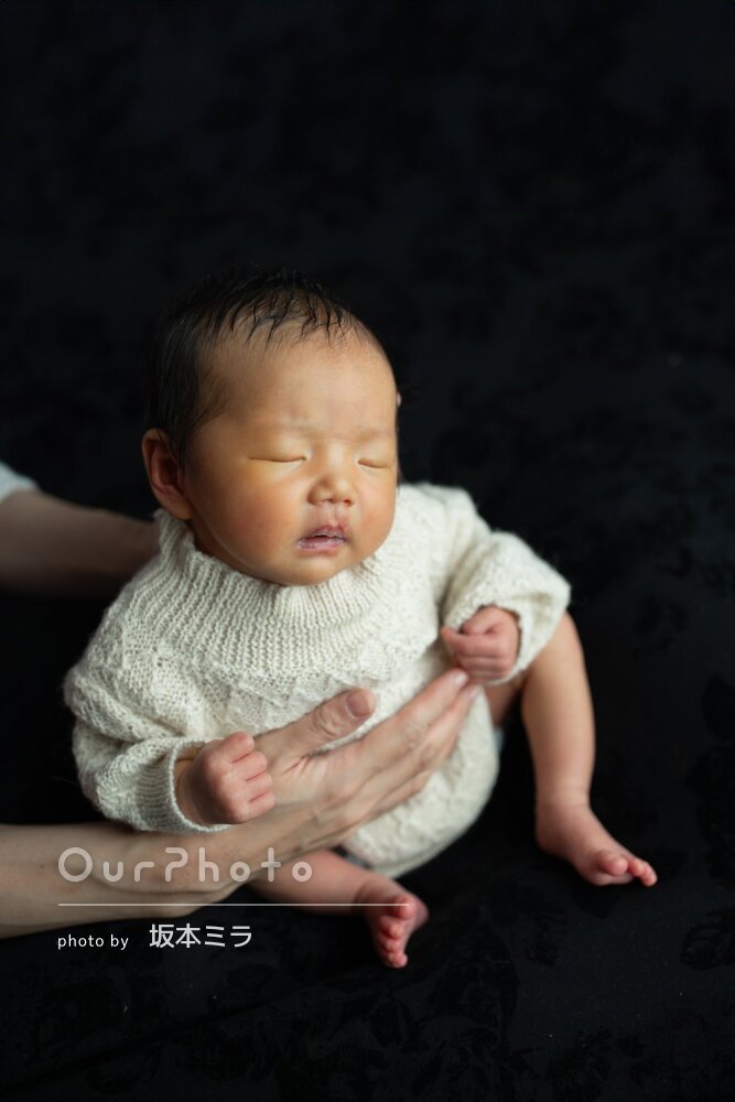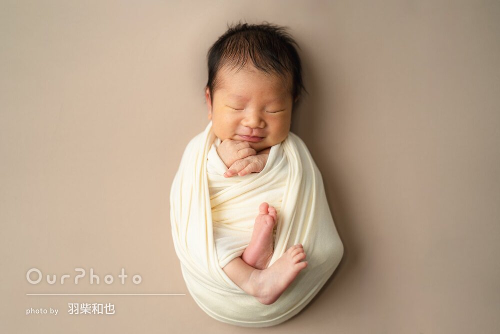急な依頼にも関わらず、事前に丁寧なご案内をいただけたので、しっかり準備をして迎えることができました。撮影ではぐっすり眠ってもらうことができ、いろんなパターンの可愛らしい写真をたくさん撮っていただけて大満足です!
