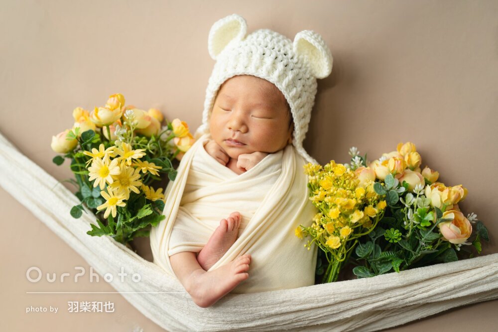いろんなバリエーションのかわいいニューボーンフォトを撮っていただき大満足です。