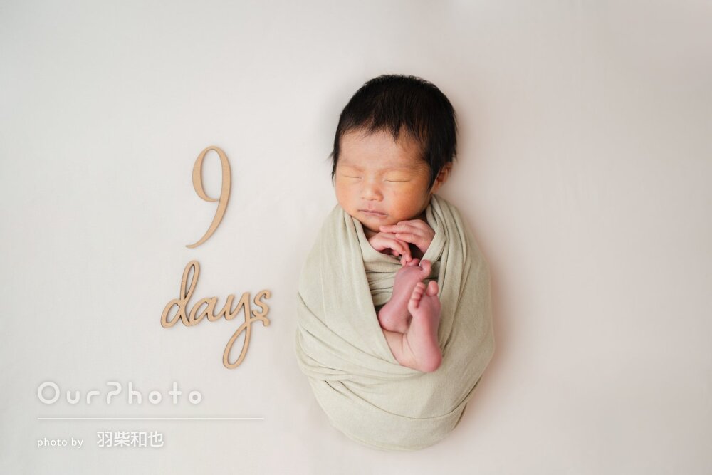 急なお願いでしたが、早急に対応していただけ希望通りの日程で撮影できました。とても楽しみにしていた撮影でしたが、期待を上回る素敵な写真で大満足です。最高の思い出となりました。事前に教えていただいた通り当日過ごしたところ、撮影中は熟睡で1度も起きることなく可愛い写真を沢山撮っていただくことができました。おくるみの包み方は安全面と可愛さで感動ものです。子供の扱いにも慣れていらして、2歳の上の子もすぐに心を開き、おかげで可愛い2ショットもしっかり撮れました。データの納品も驚くほど早く感動しました。大切な我が子を丁寧に接していただけ、安心してお任せすることができました。お願いして本当に良かったです。ぜひまた七五三などでもお世話になりたいです。本当にありがとうございました。