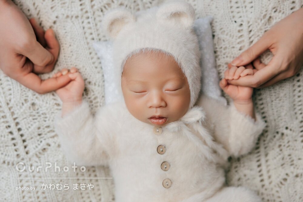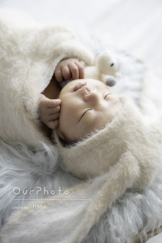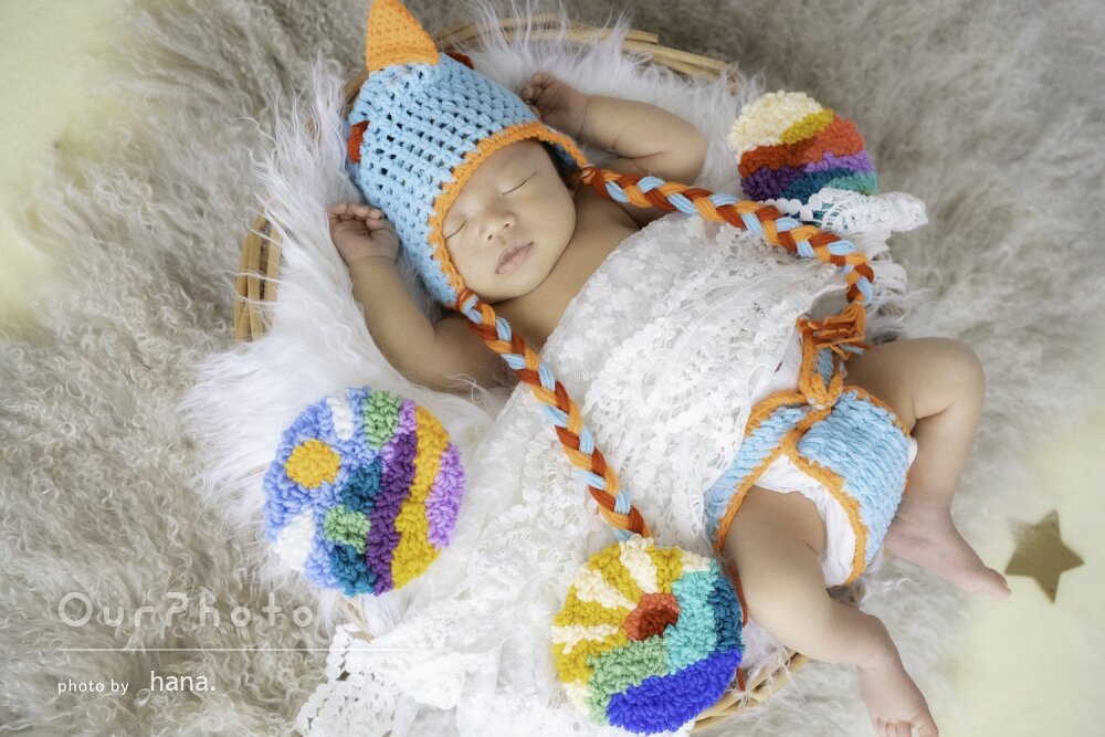 娘がなかなか深い眠りにつけず、撮影開始までかなり時間を要したのですが、時間の許す限りたくさんのパターンを撮影してくださりました。