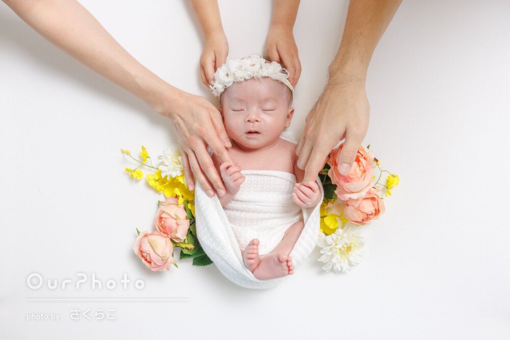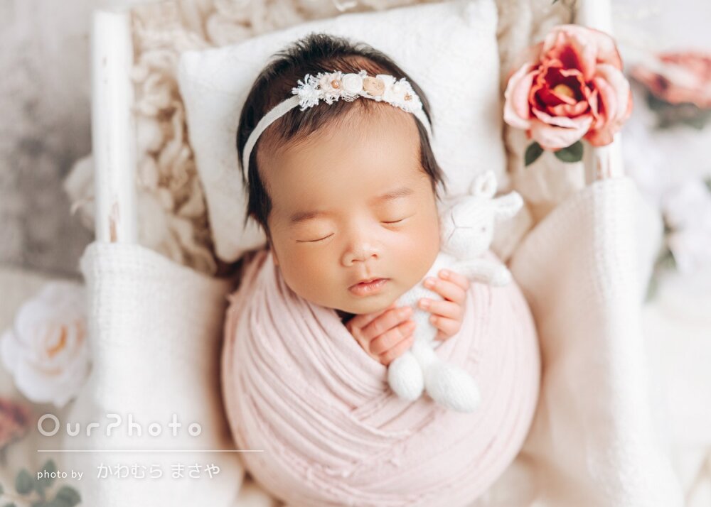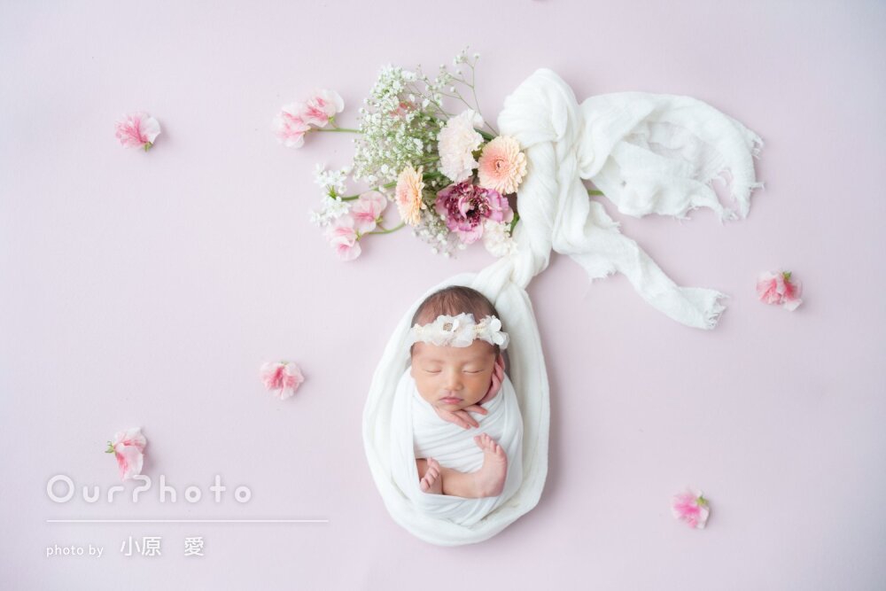 当日も細かい要望を聞いてくださったり、使用するお花やおくるみ等沢山の中から選ばせてもらう事ができて、満足いく写真が撮れました。