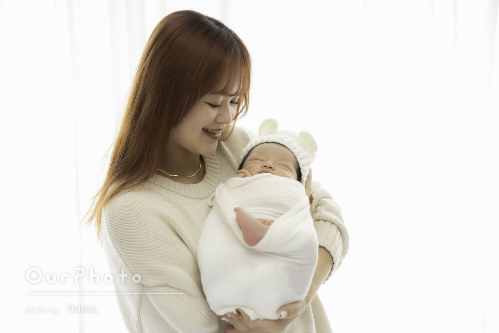 なかなか寝ついてくれなかったのですが根気よくおくるみまいていただいて念願のおくるみフォト撮れました!素敵な写真ありがとうございました!