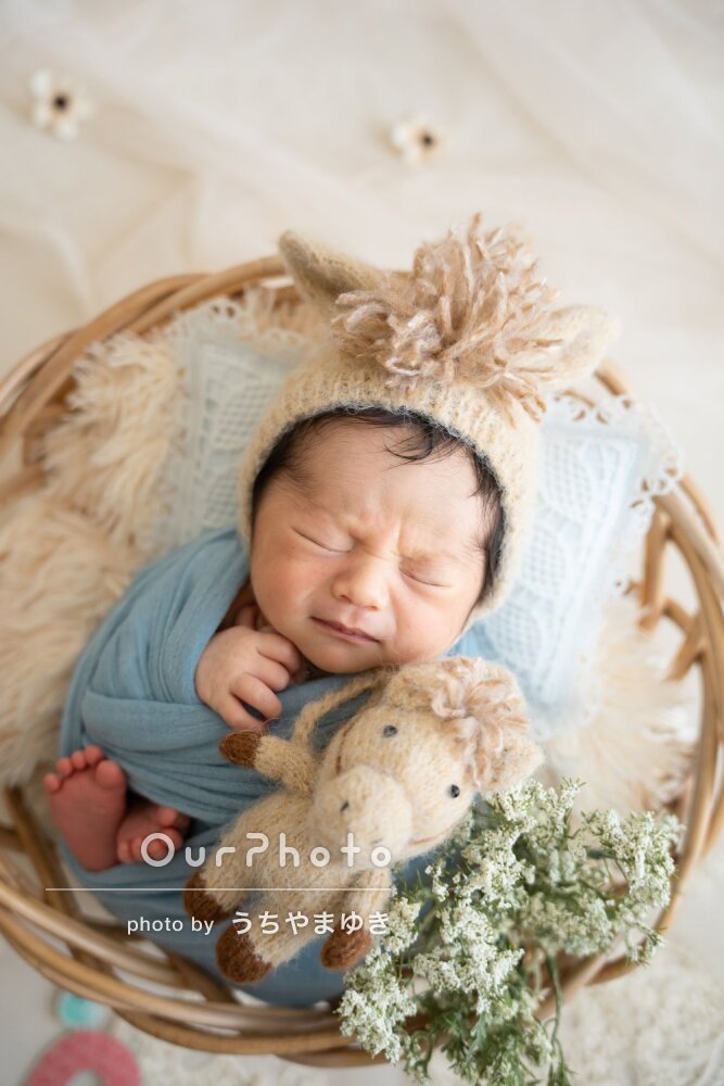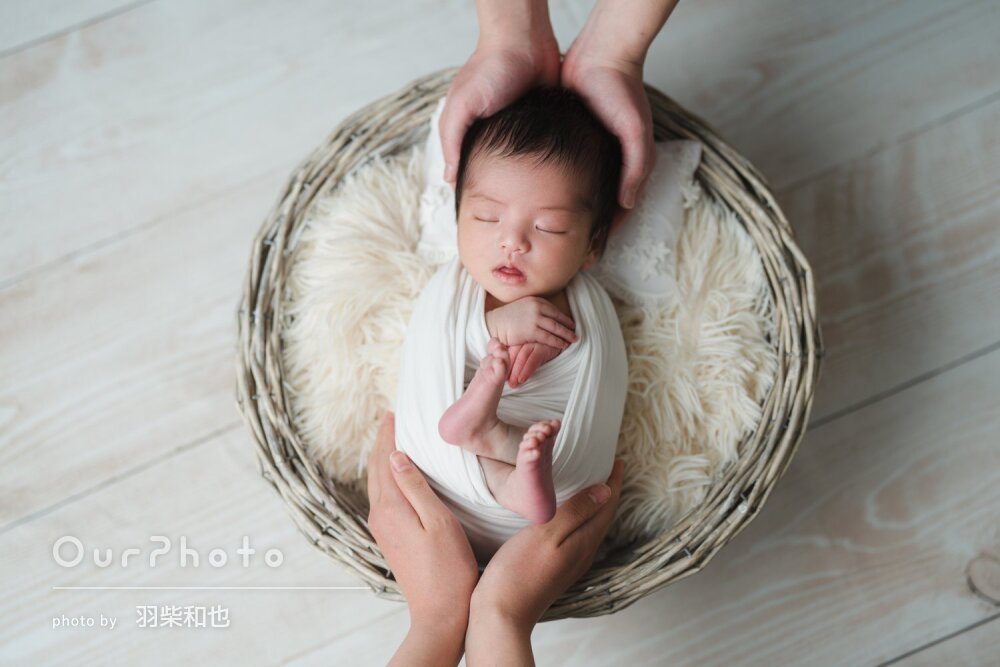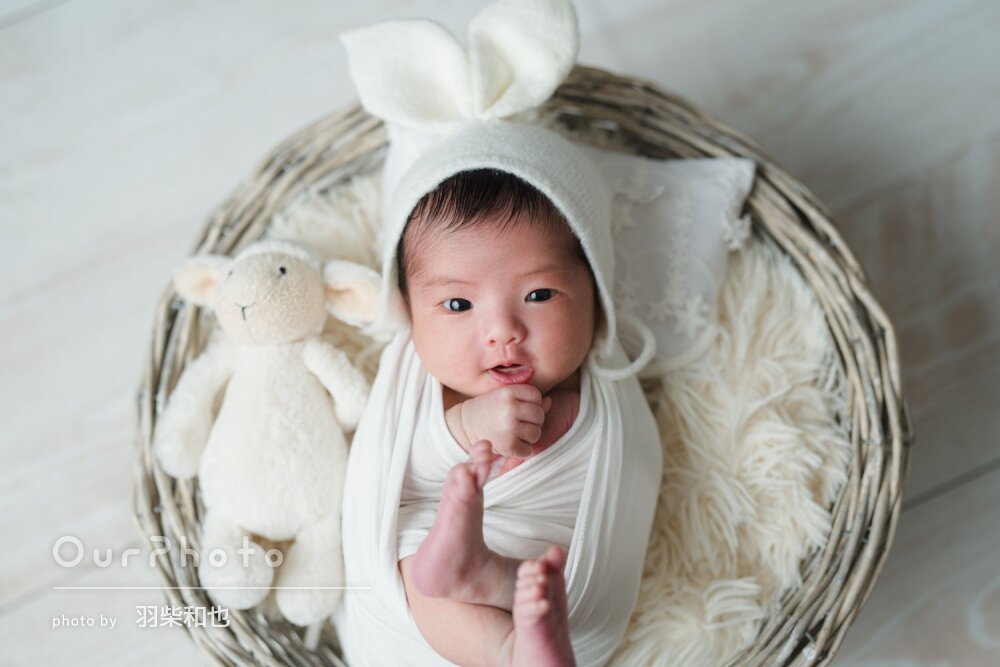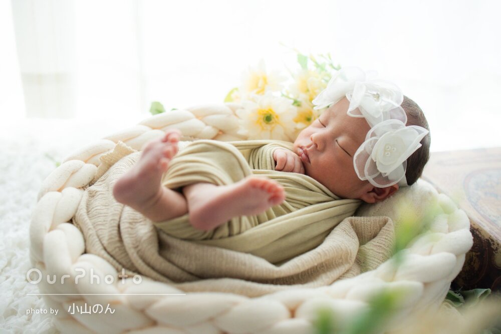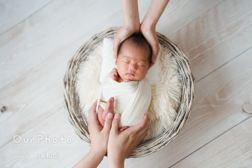 ニューボーンフォトでは小道具等もお持ちいただき、素敵な写真を取っていただきました!ありがとうございました!