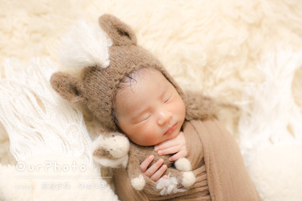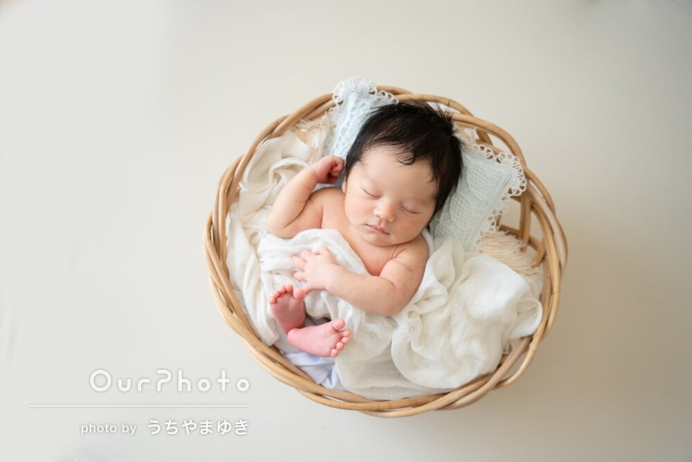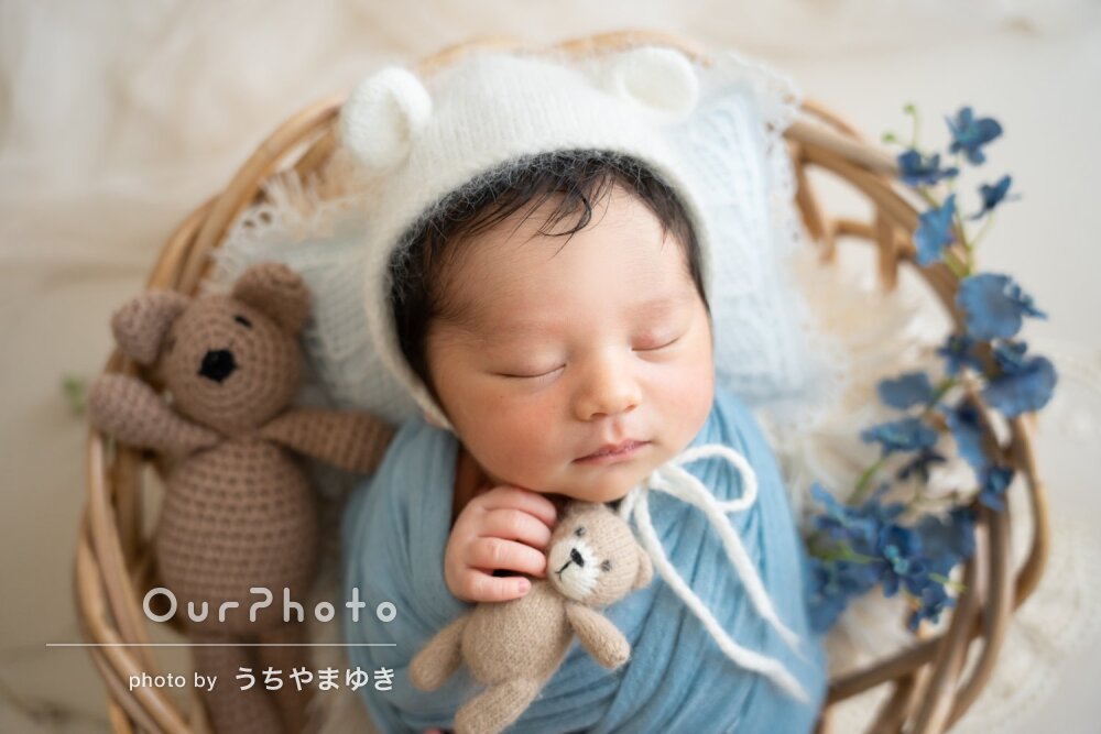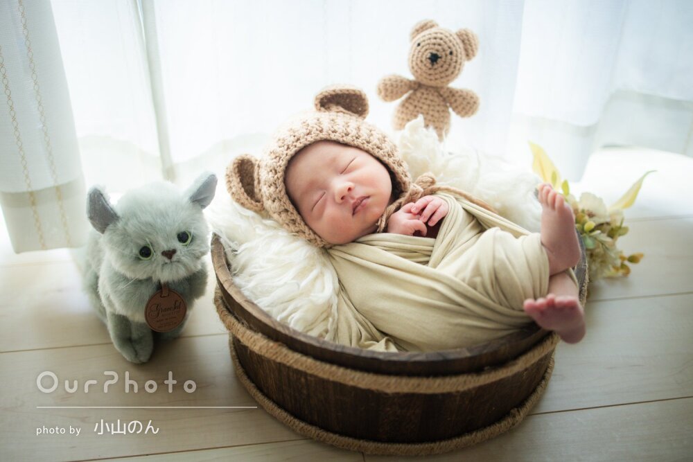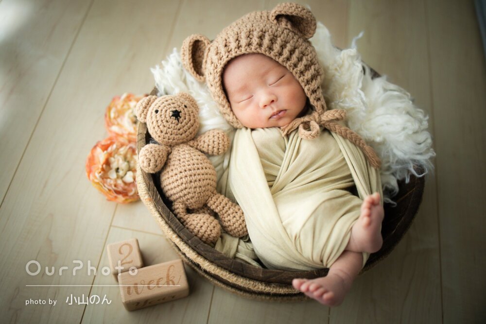 ニューボーンフォトでは小道具等もお持ちいただき、素敵な写真を取っていただきました!ありがとうございました!