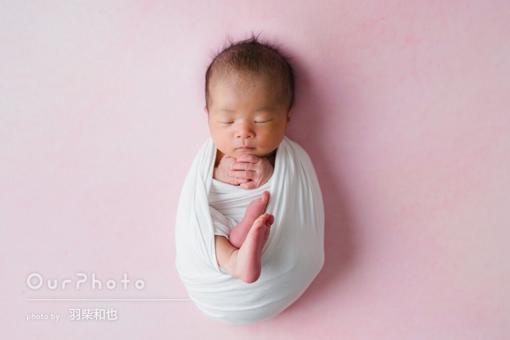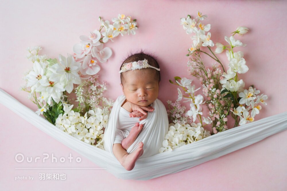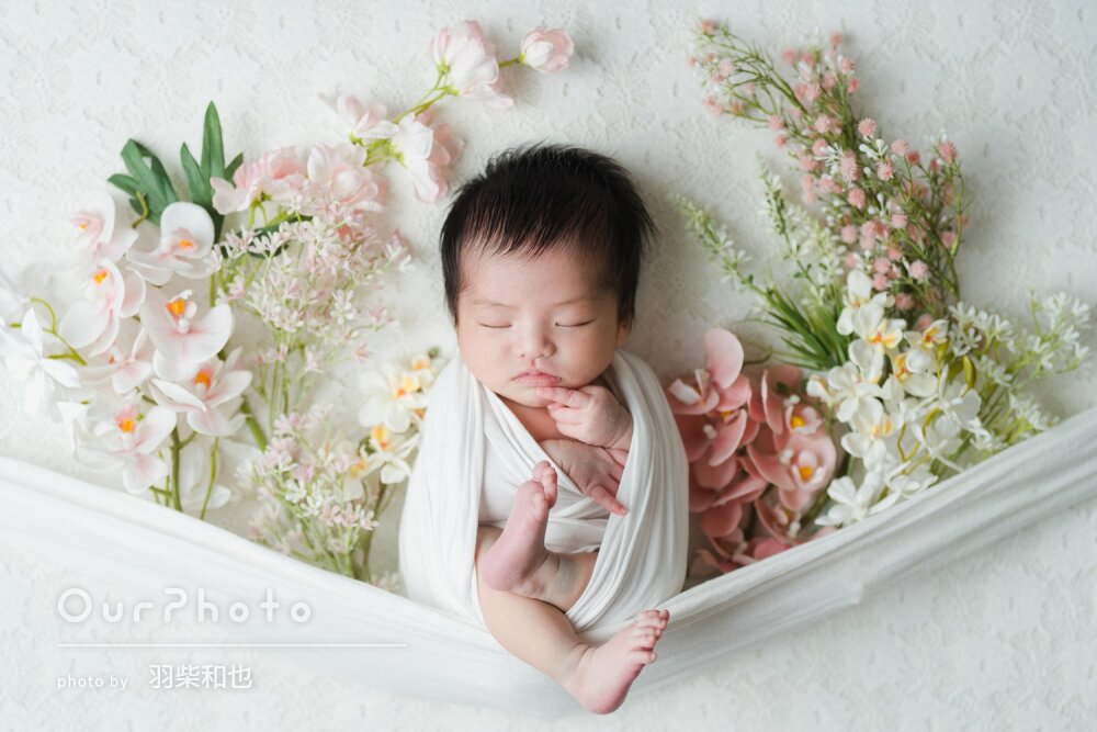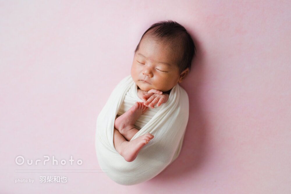 ニューボーンフォトの撮影、ありがとうございました。予約は直前になってしまいましたが、迅速に連絡等いただき助かりました。思い切ってご依頼して良かったです。上品で可愛らしい唯一無二の写真が完成し、満足しています!
