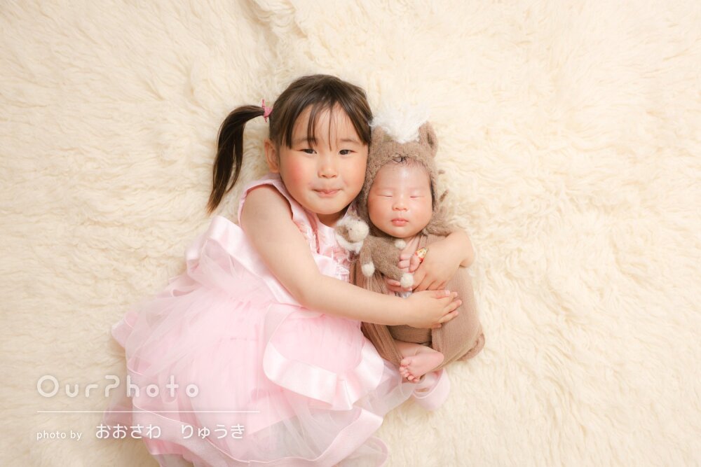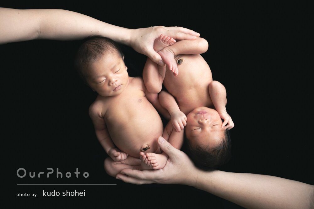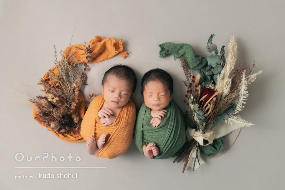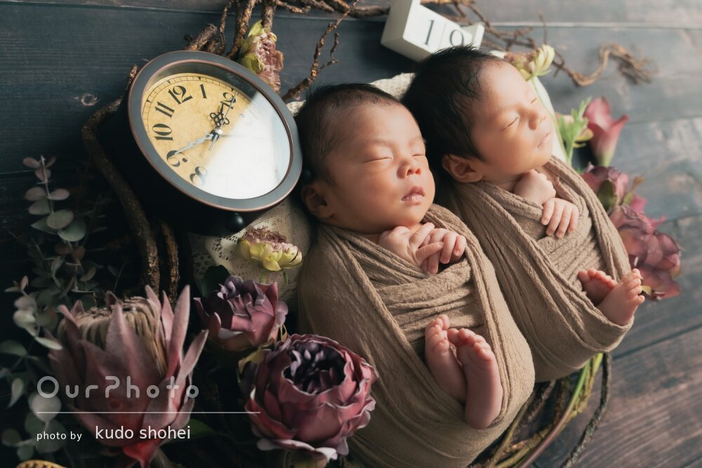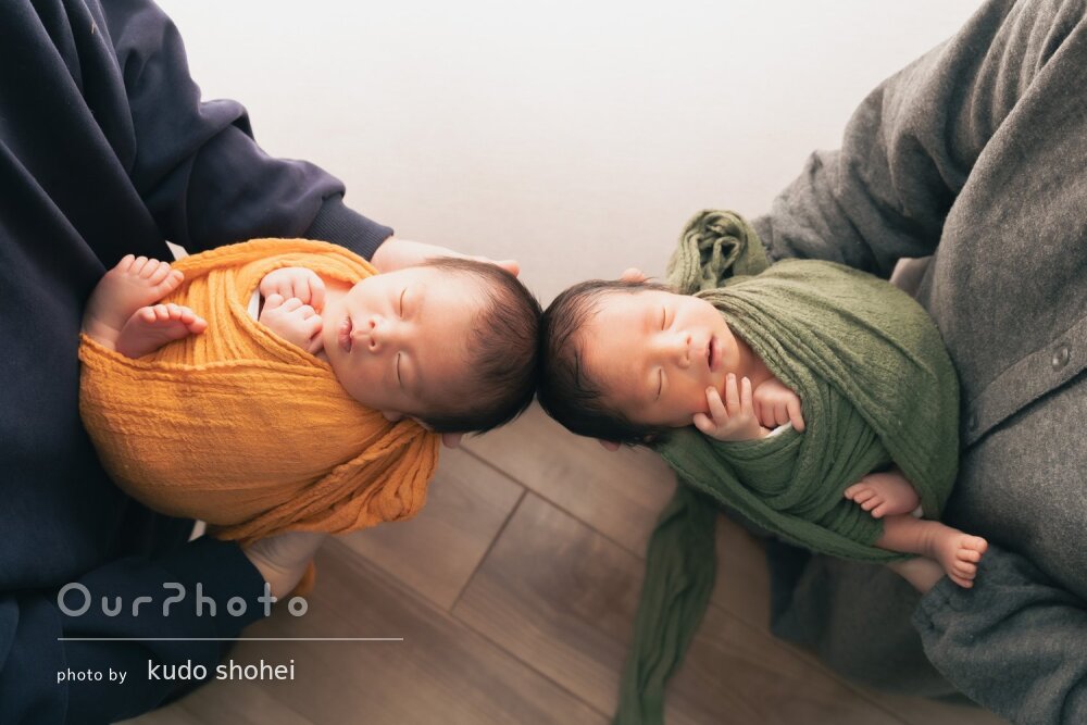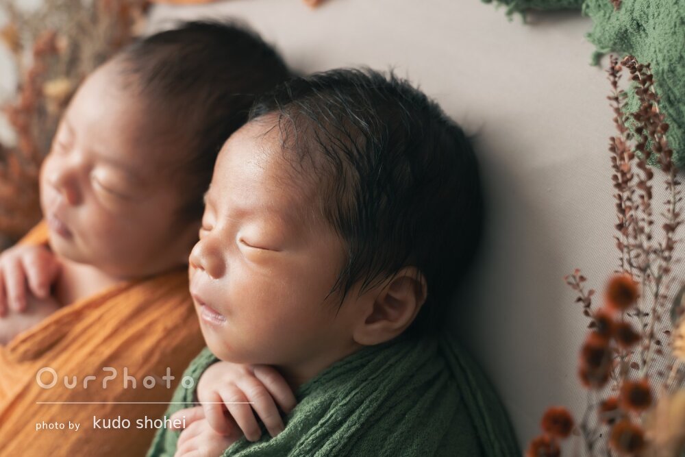 双子の撮影でしたが、新生児の扱いも慣れている点もおすすめポイントで、適宜あやしながらスムーズに撮影を行うことができ、その点も高評価ポイントです。