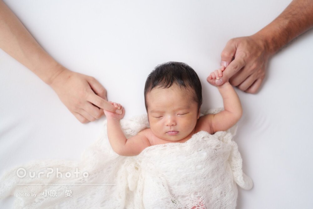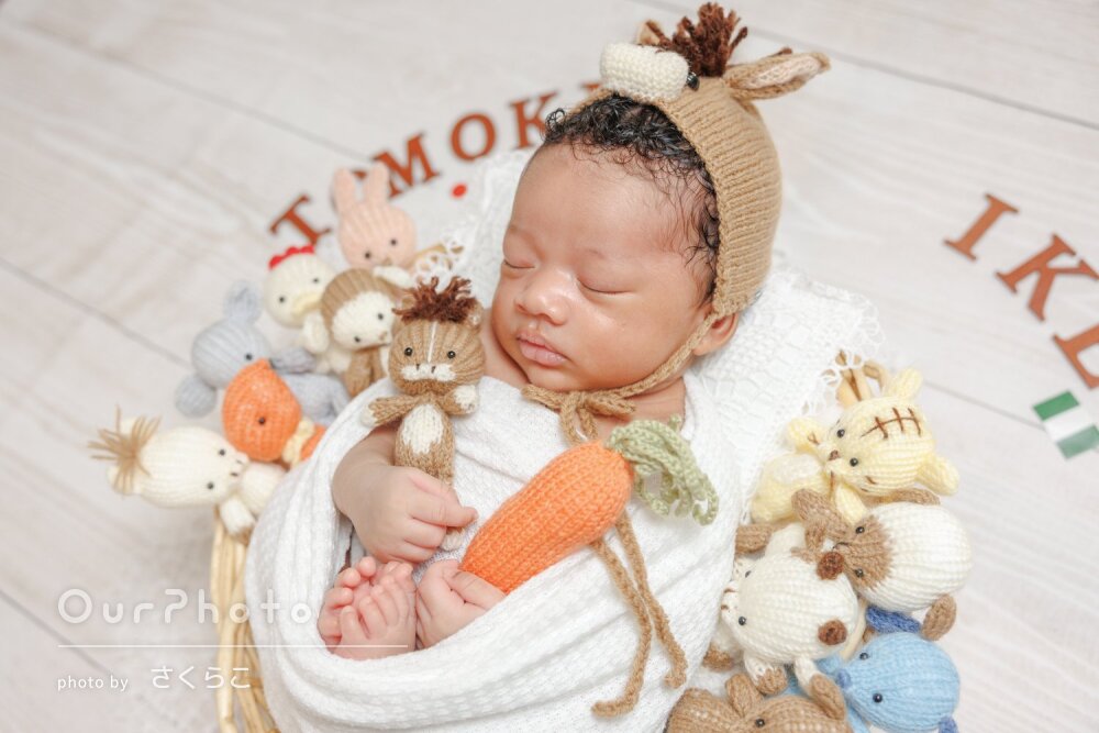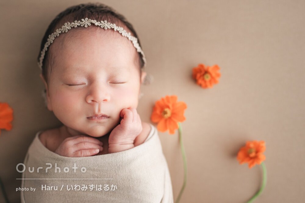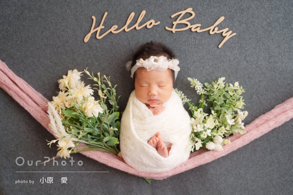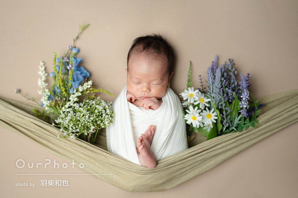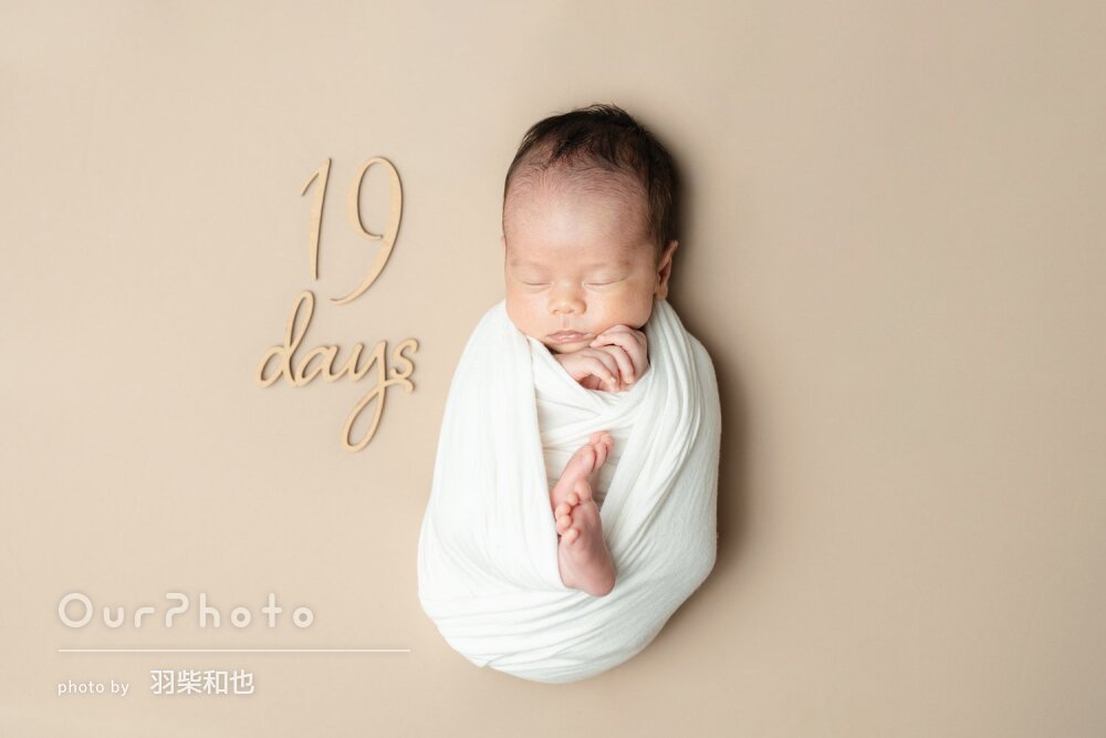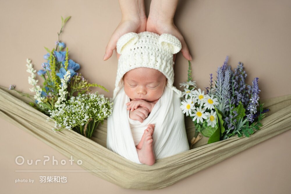 生後3週目での撮影だったため泣かないか、撮影出来るか不安でしたが、時間をかけて丁寧に撮影いただき、赤ちゃんも安心した様子でした!!