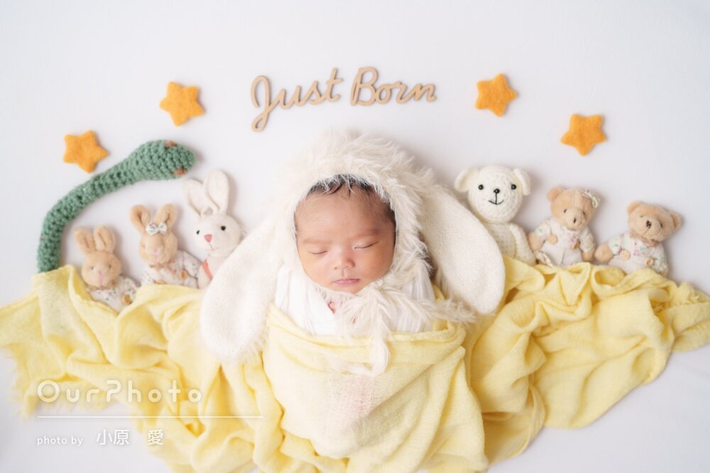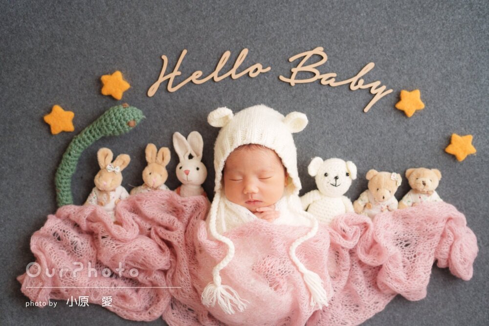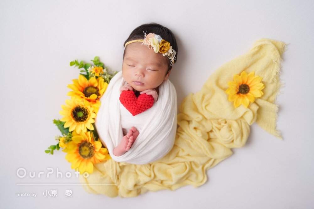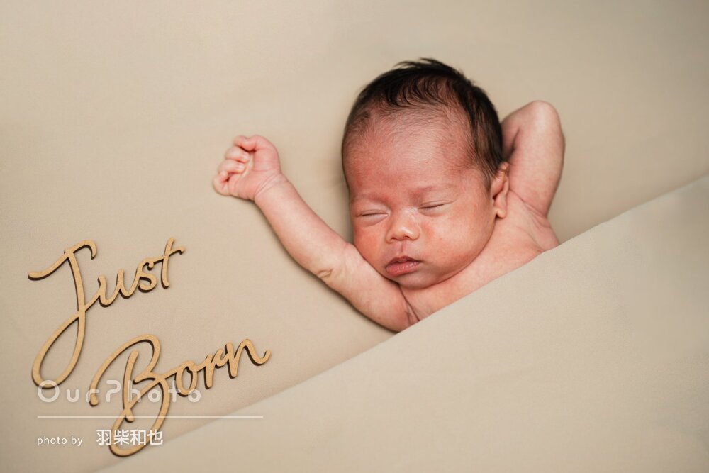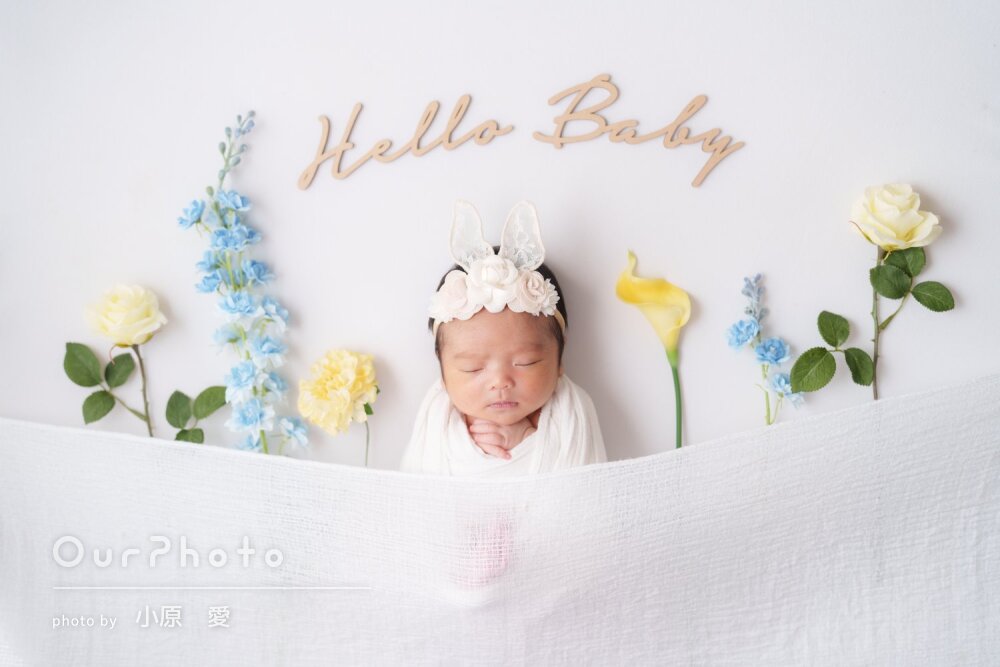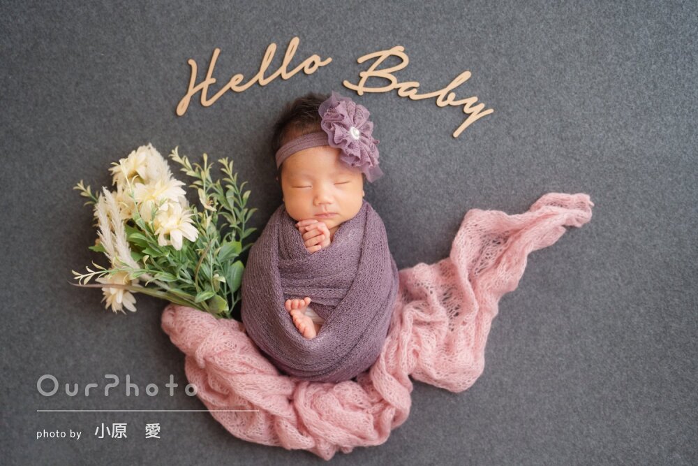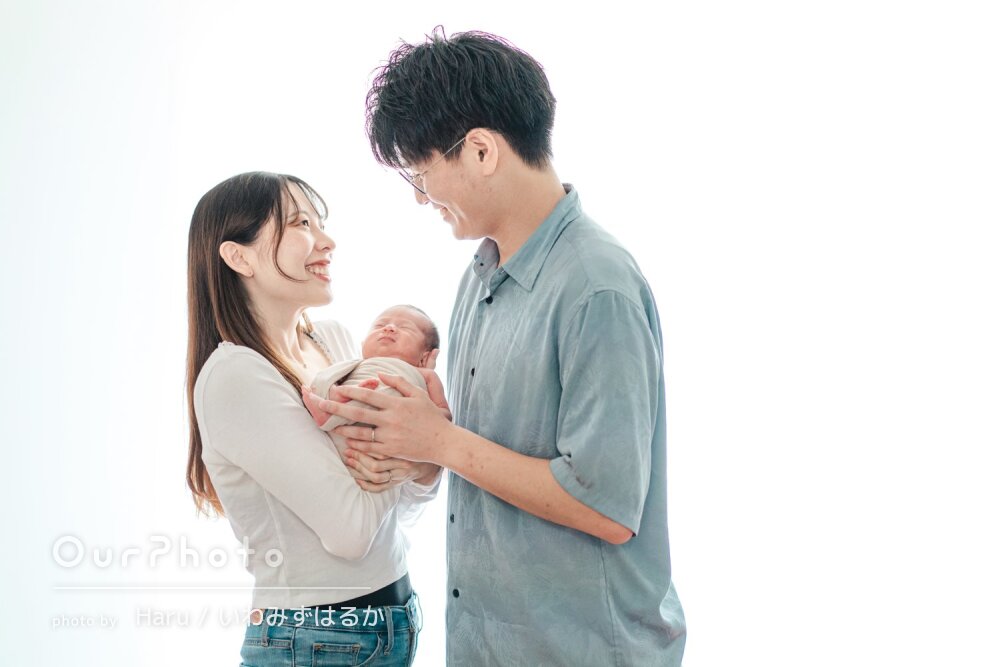 生後3週目での撮影だったため泣かないか、撮影出来るか不安でしたが、時間をかけて丁寧に撮影いただき、赤ちゃんも安心した様子でした!!