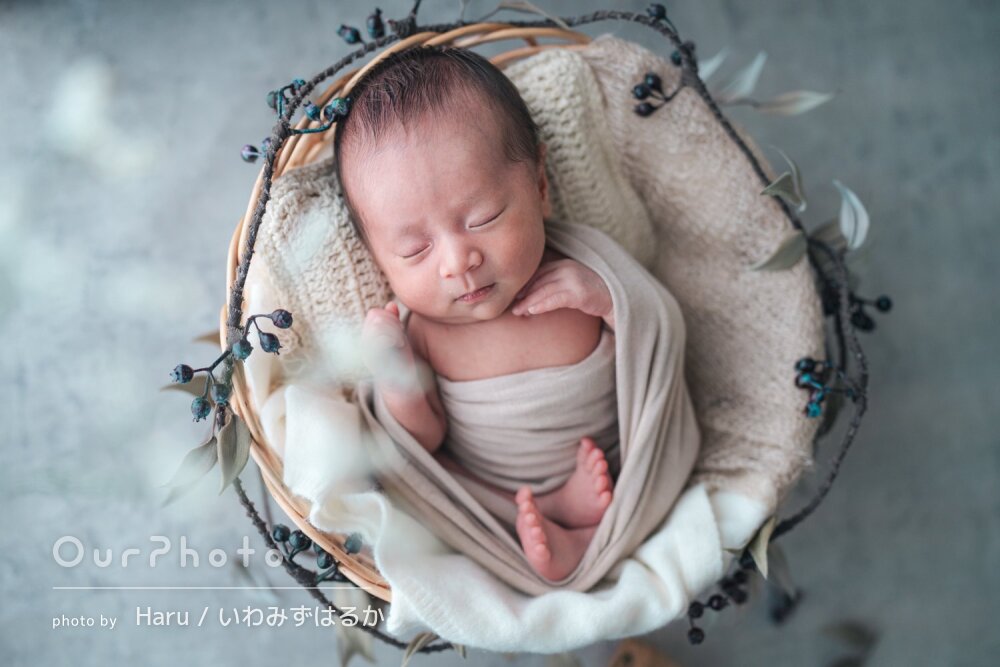 この度は素敵なニューボーンフォトを撮影していただき、本当にありがとうございました。小さな姿をとても丁寧に残していただき、家族の宝物になりました。」