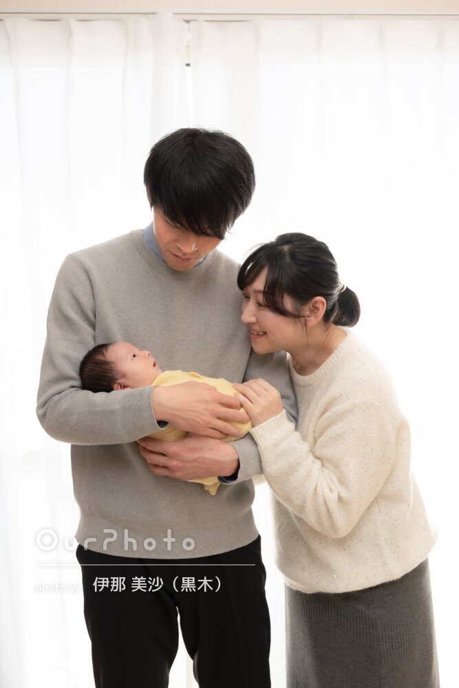 普段は着替えのときによく泣いてしまう子なので、うまく撮影できるか不安でしたが、赤ちゃんの扱いに慣れていらっしゃる黒木さんのおかげで落ち着いて撮影することができ、記念に残る写真をたくさん残すことができました。