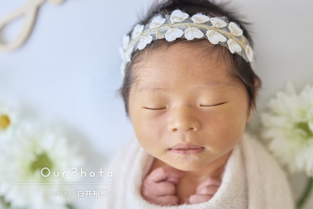 おくるみの色や床の明るさ、ヘア飾りなどを当日に選ぶ時間もとても楽しく、撮影前からワクワクした気持ちで過ごせました。