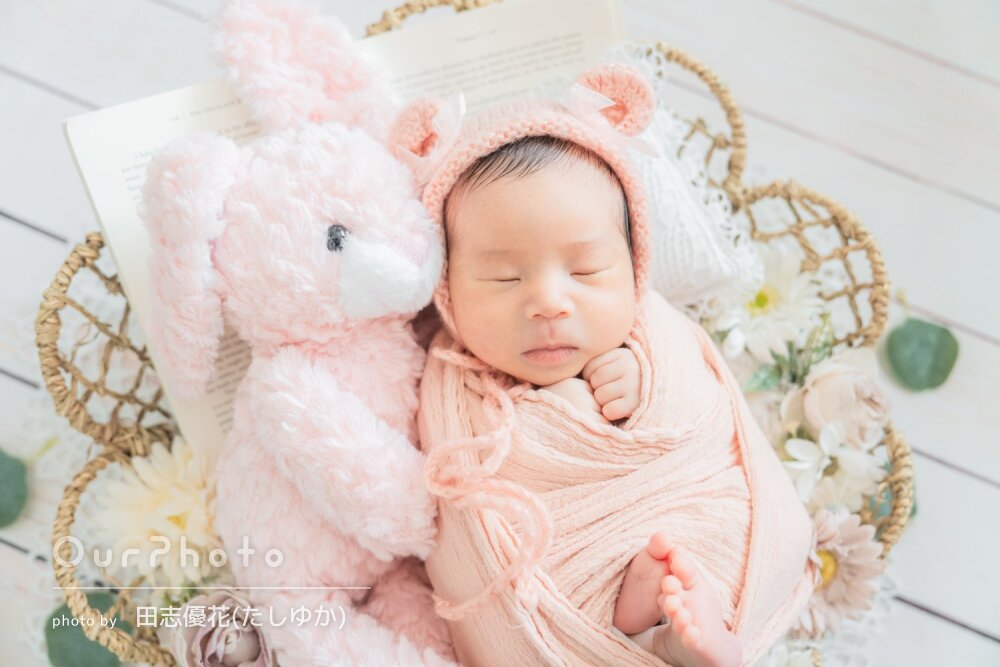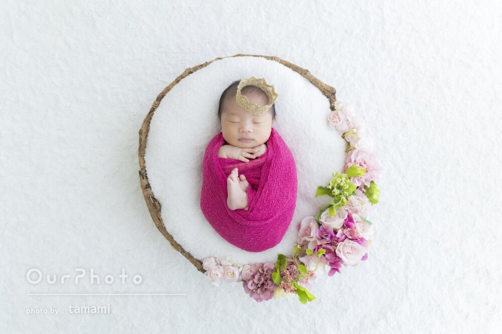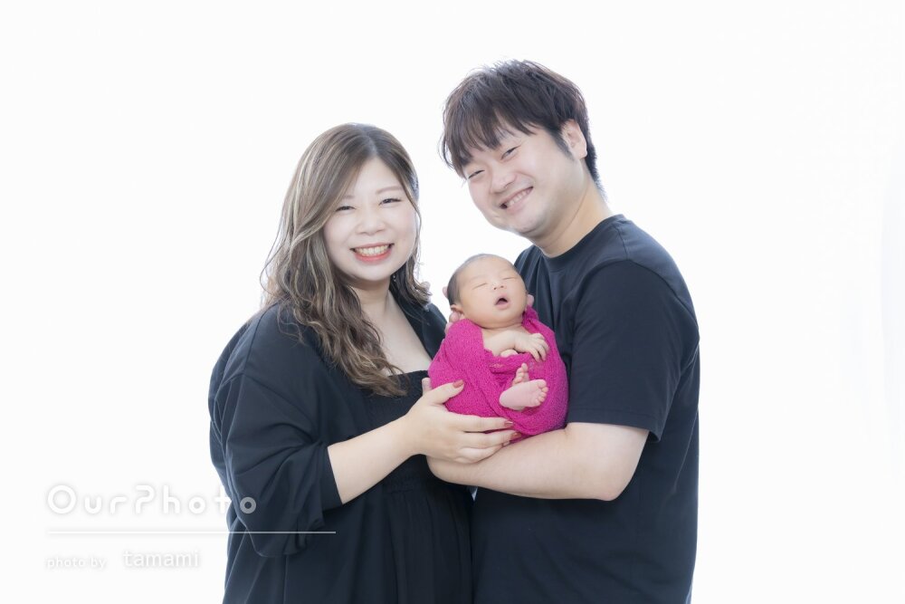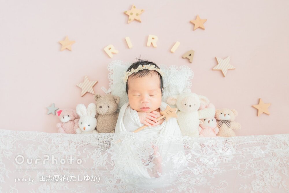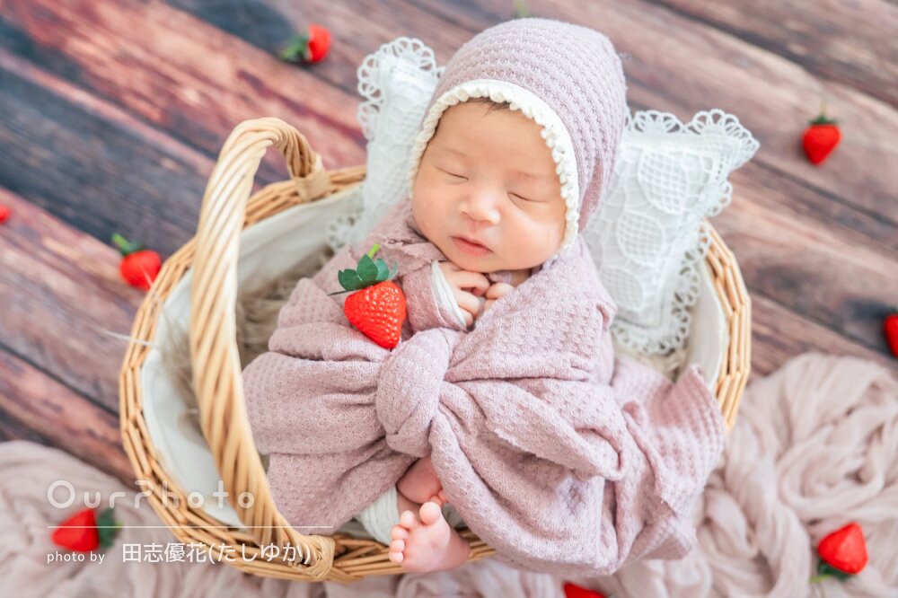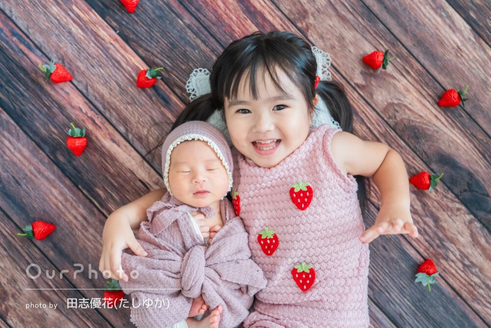 ニューボーンフォトでお世話になりました。赤ちゃんの扱いの丁寧さはもちろん、上の子の相手もしながら撮影して頂けてとても楽しい撮影になりました。可愛い写真をいっぱい撮って頂けて大満足です。ありがとうございました!
