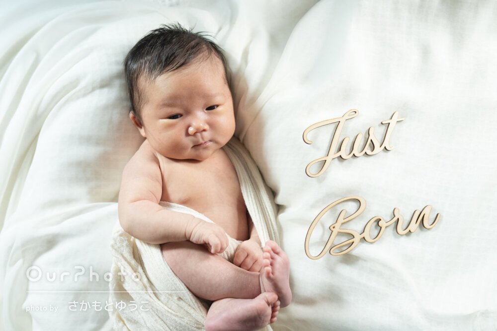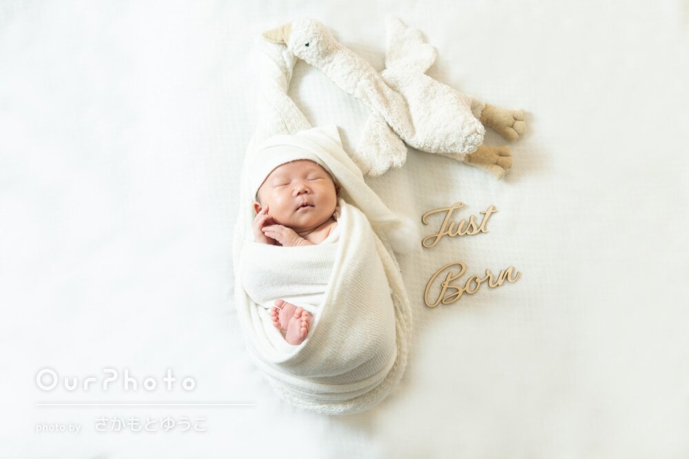 事前にやり取りの際、こちらで準備しておくものや、赤ちゃんの段取りを組んでいただいていたおかげで、スムーズに撮影していただけたと思います。