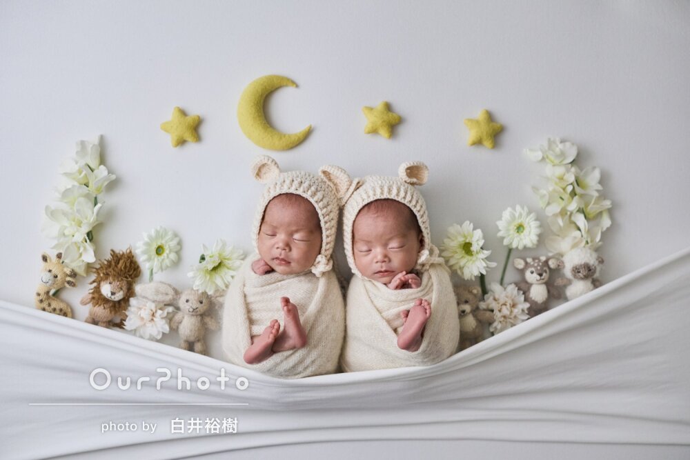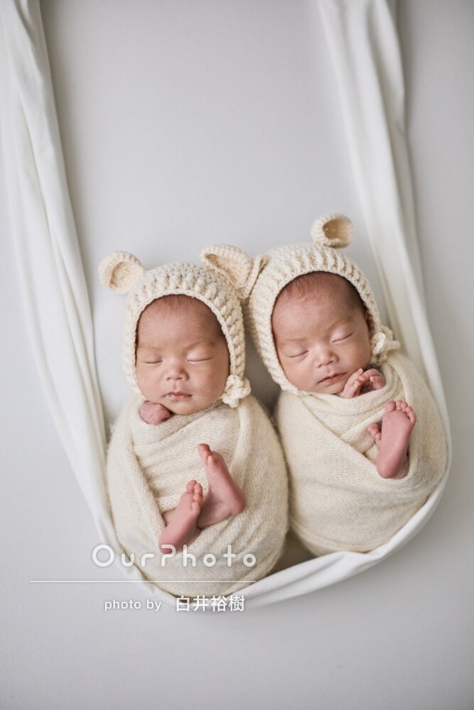双子の撮影でしたがスムーズに対応してくださり、撮影中に1人が起きても優しくあやしてすぐ寝かせてくださって、さすがプロ…!と感動しました。