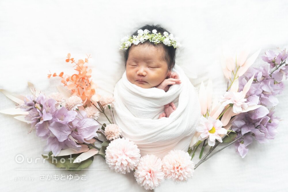 ニューボーンフォトを自宅で撮影していただきました。