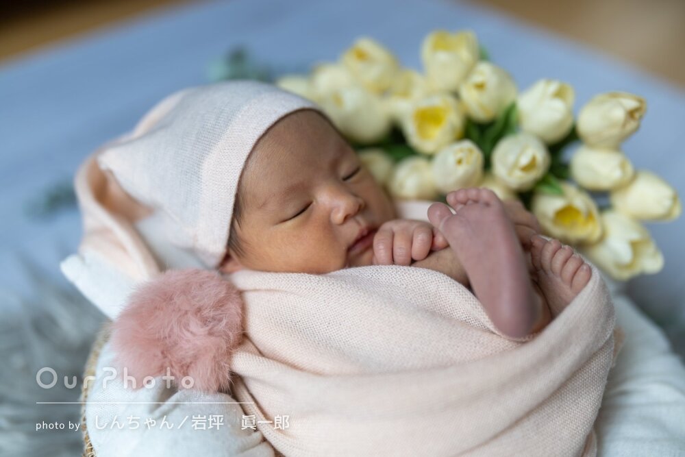 生後1ヶ月少し過ぎてたので不安でしたが、それでもちゃんとニューボーンフォトとして撮影できてよかったです!