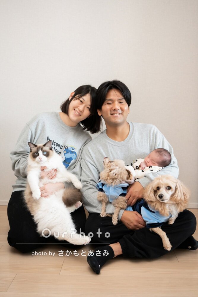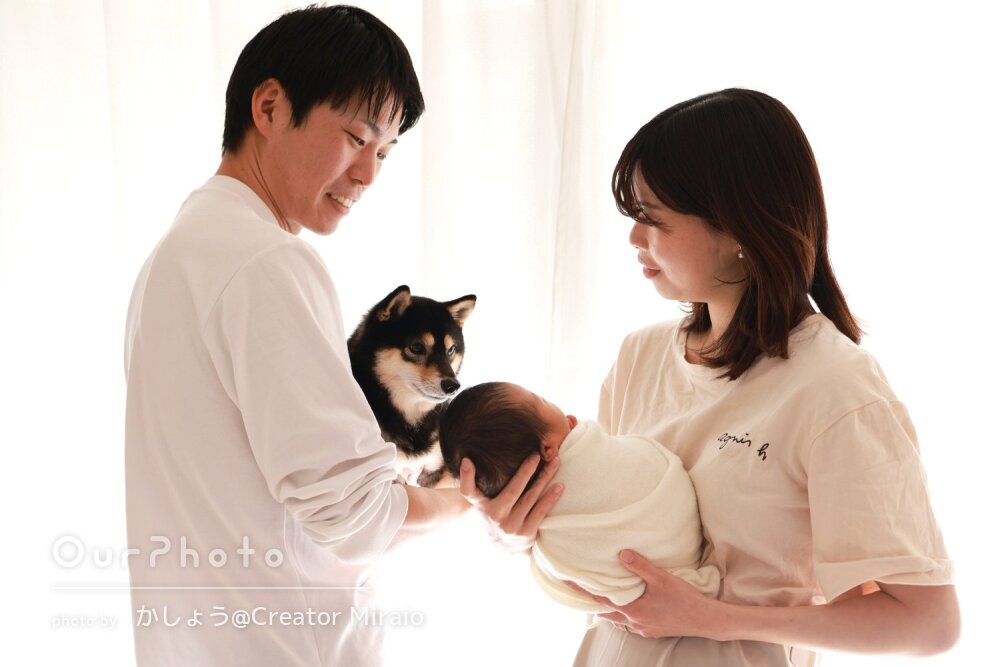 赤ちゃんだけでなく、家族写真やペットとのカットもたくさん撮ってもらえて、とても良い記念になりました。