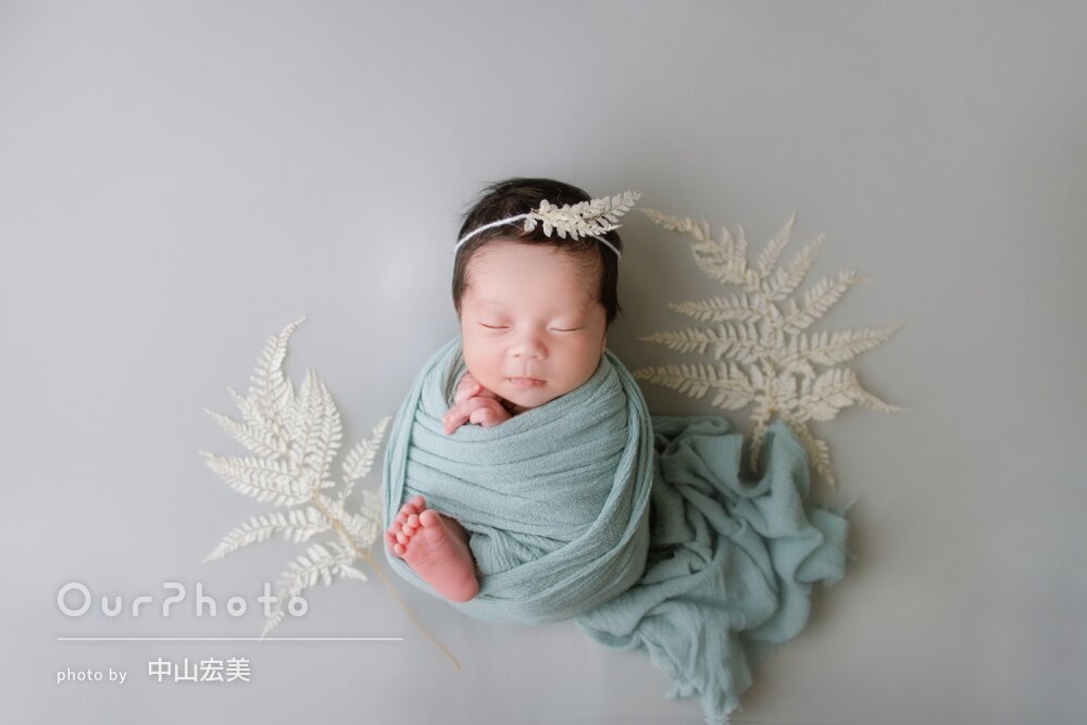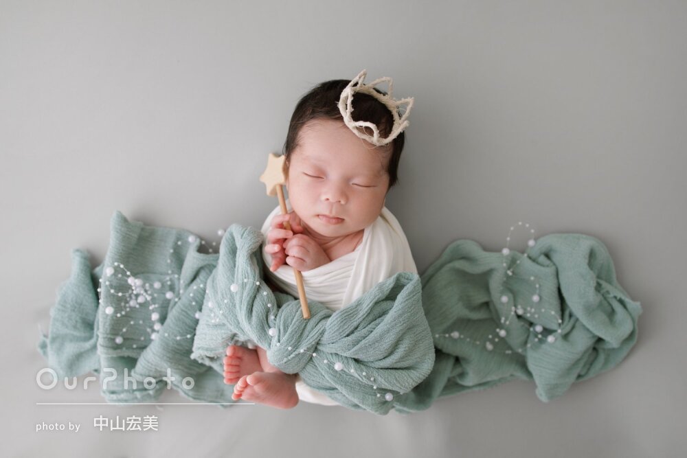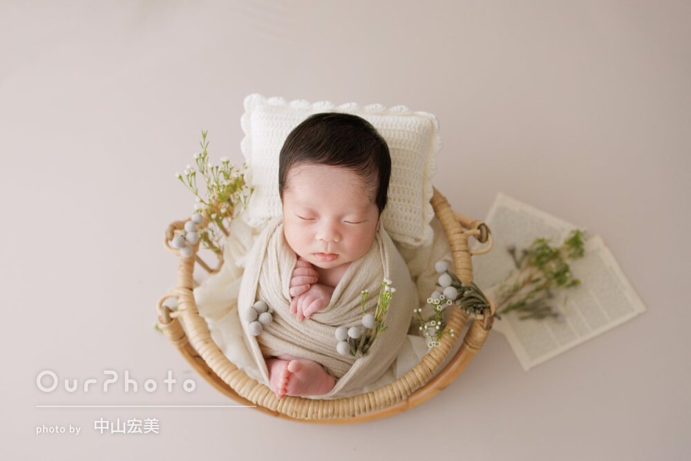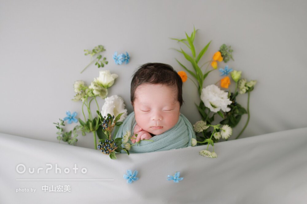 小物やおくるみの種類もとても多く、選ぶのに迷いましたがいくつか選択肢を出してくれるので素敵な写真になりとても嬉しかったです^_^