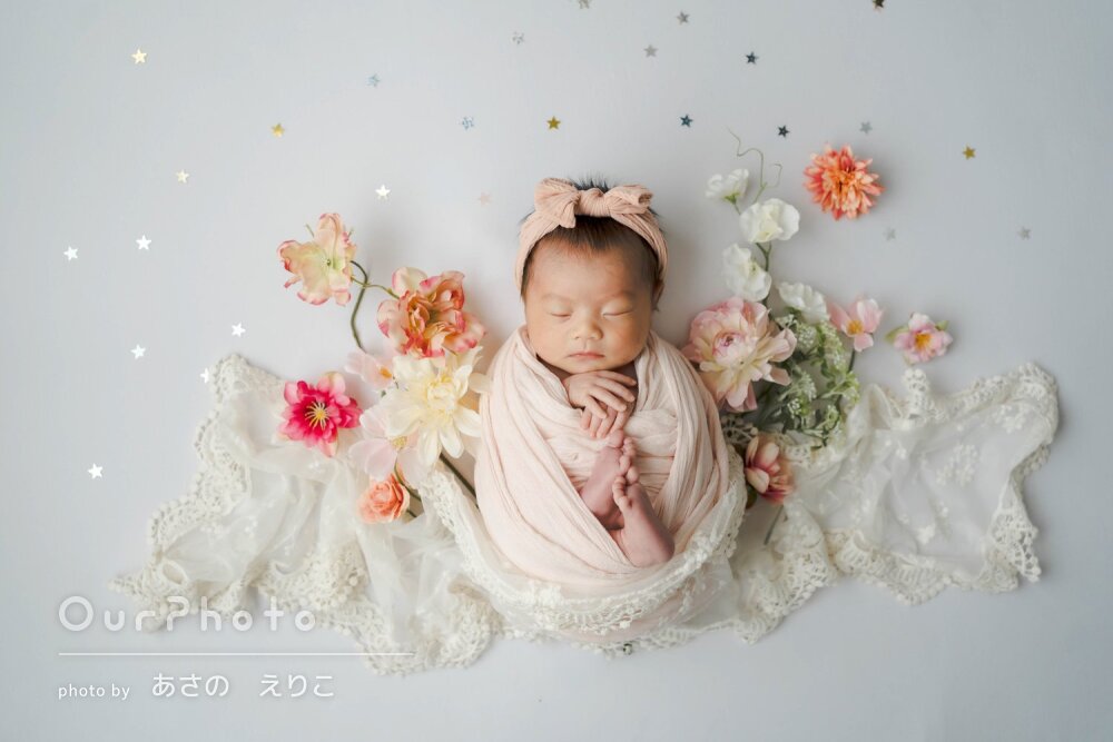 今回姉におすすめしてもらってニューボーンフォトを依頼させていただいたのですが、期待以上の可愛さとセンスの良さで本当にあさのさんに頼んでよかったなと思います。