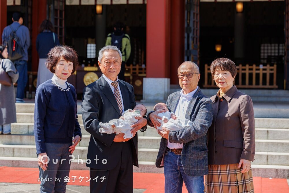写真のロケーションなどはあまり考えずに撮影に望みましたが、素敵なポージングのご提案や、母子の疲れなども配慮していただき、大変助かりました。上の子も緊張がほぐれて、笑顔で撮っていただきました。また祖父母との写真もたくさん撮っていただき、2人とも大変喜んでいます。