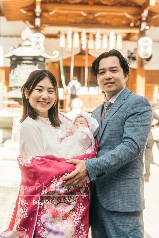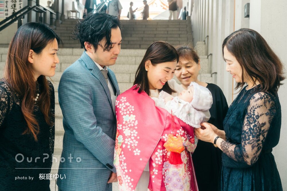 今回はお宮参りでの撮影でした 生後3ヶ月での撮影ということもあり赤ちゃんが泣いてしまう場面が多かったのですがとてもにこにこしてくださり本当に感謝しております 参加人数が多かったにも関わらず全員が漏れなく撮影できるように促してくださりありがたかったですし、気遣いが素晴らしくまたお願いしたいです!
