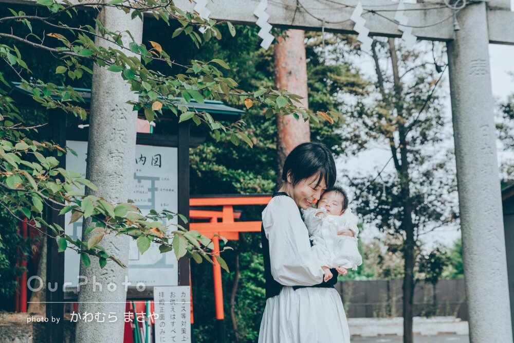 碑文谷八幡宮でお宮参りの撮影をお願いしました。これまでたくさんのお子様の写真を撮影されてきたご経験からか、始終我が子もご機嫌でした^^