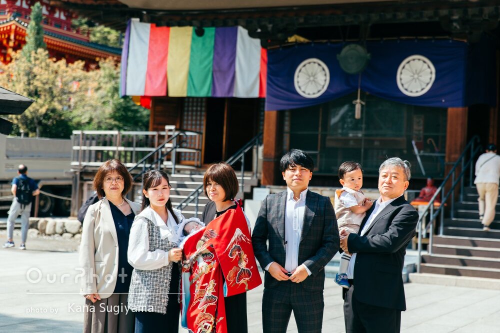 家族写真はもちろん、父方の親、母方の親も含めた大人数での集合写真や、兄弟のみの写真など、様々なバリエーションをとても素敵に撮影していただき、全員が大満足でした。