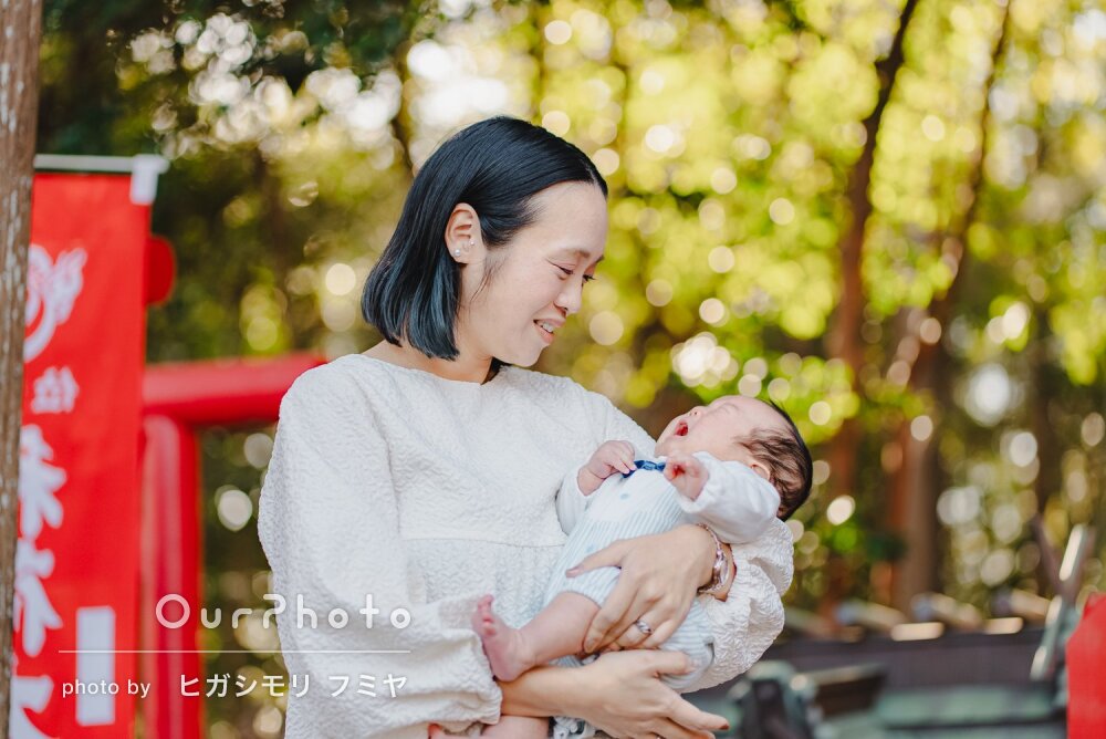 撮影中はポージングや場所の指定までとても的確でした☺️また、お宮参りでの3ヶ月の赤ちゃんを連れての撮影は本当に心配でしたが、私への抱っこの負担も考慮してくださったり、赤ちゃんがなるべく眩しくないようにと配慮してくださりすごく助かりました!
