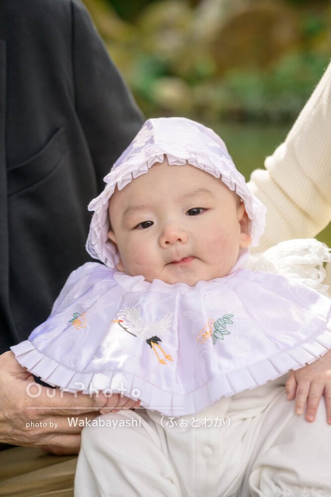 撮影では蒸し暑かったり時々小雨もありましたが、気を配ってタイミングよく撮影してくださり素敵な写真を撮っていただけました。赤ちゃんの目をカメラに向けさせるようオモチャを駆使したり、赤ちゃんだけでなく私達大人にも気を配っていただき感謝申し上げます。家族の節目として心に残る思い出をたくさん残すことができました。来られなかった夫方のおじいちゃん・おばあちゃんに写真を送りましたら、ほんとうに喜んでくれました!納品に関しても、思った以上に多くの枚数を迅速に御納品いただきありがとうございました。 またの機会がありましたら是非よろしくお願いします。