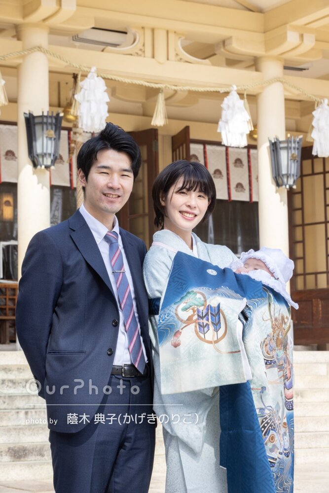 この度は素敵な写真を撮影していただき、ありがとうございました。お宮参りでの撮影となりましたが、初めての子で勝手がわからない私達に親身に寄り添っていただき、終始安心してお任せする事ができました。