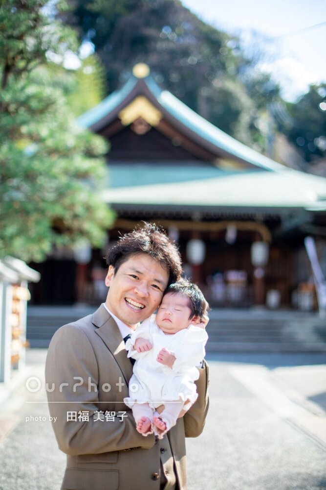 この度はありがとうございました。当日はあいにくの天気でしたが雨がやんだタイミングで外の撮影をするなど臨機応変に対応してくださいました。お宮参りの撮影も慣れていらっしゃるようで全てお任せしました。写真の納品も早く、たくさん撮ってもらい依頼して良かったです。また機会があればよろしくお願いします。